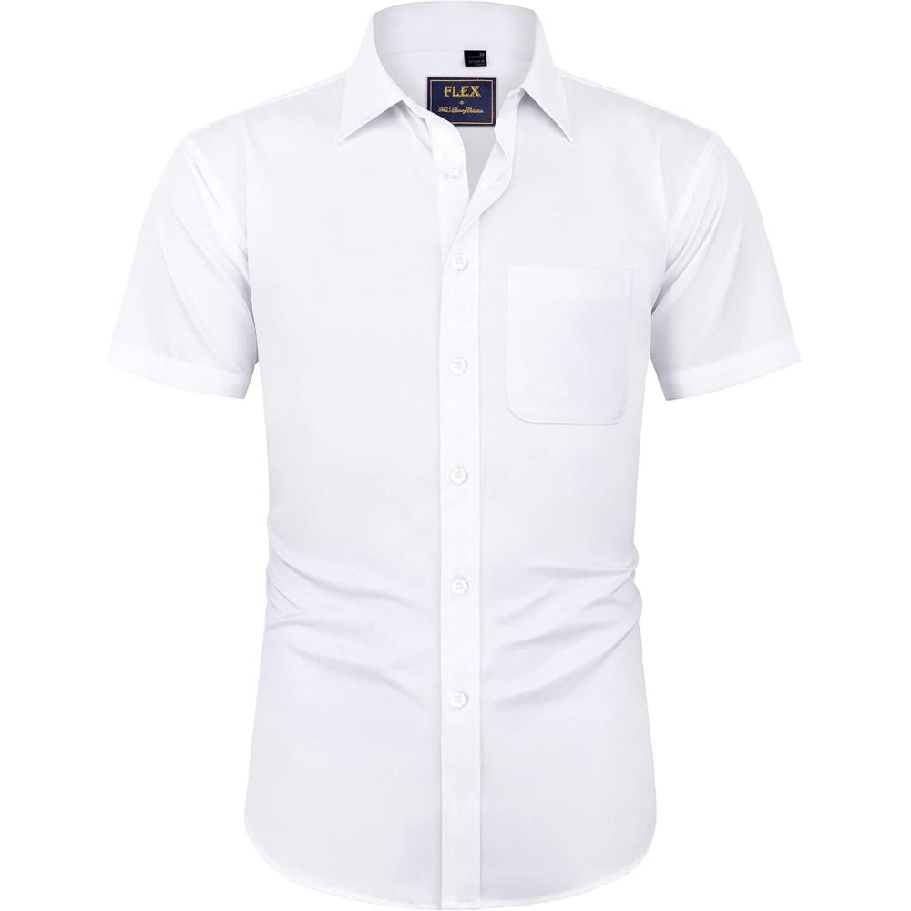 J.VER Men’s Short Sleeve Dress Shirts Stretch Wrinkle Free Casual Button Down Shirts with Pocket for Business Wedding(White)
