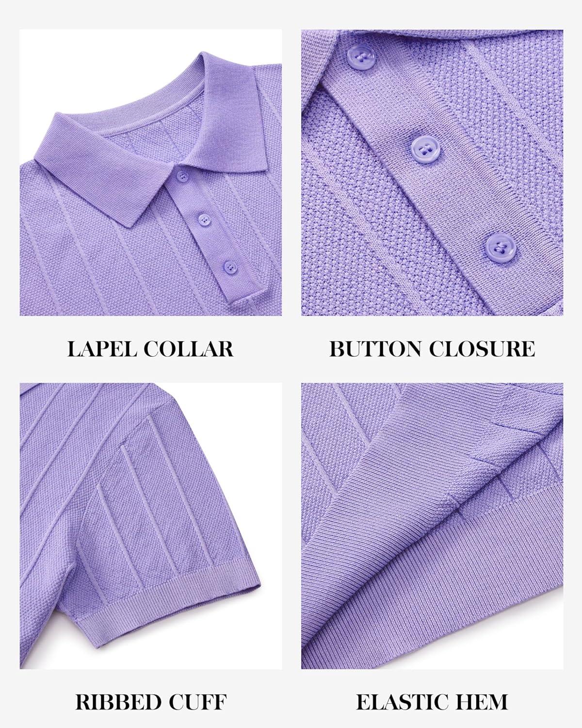 J.VER Polo Shirts for Men Short Sleeve Ribbed Textured Knit Shirt Stretch Casual Golf Tops(Lavender Purple)