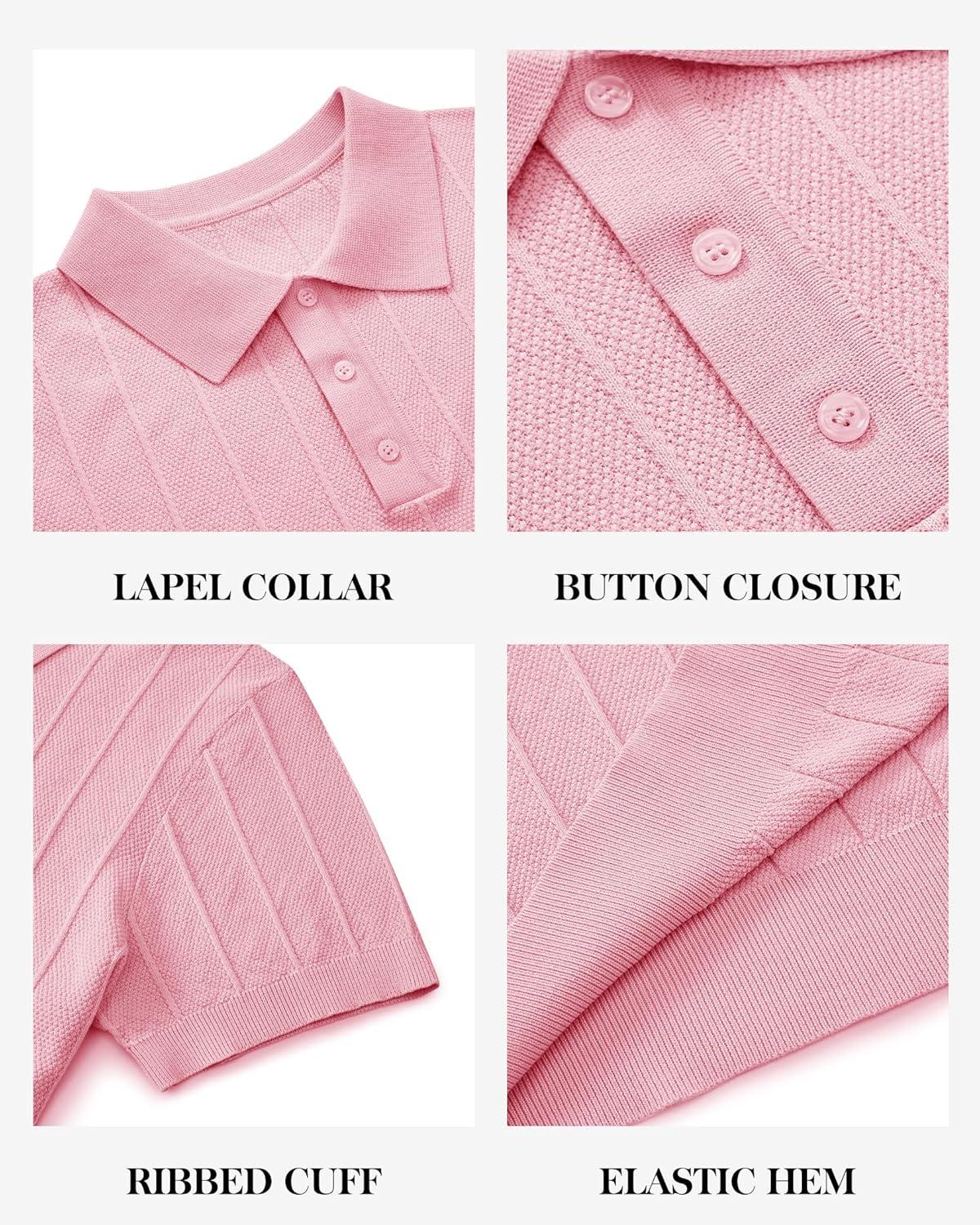 J.VER Polo Shirts for Men Short Sleeve Ribbed Textured Knit Shirt Stretch Casual Golf Tops(Pink)