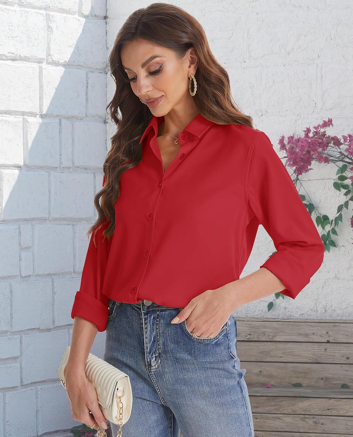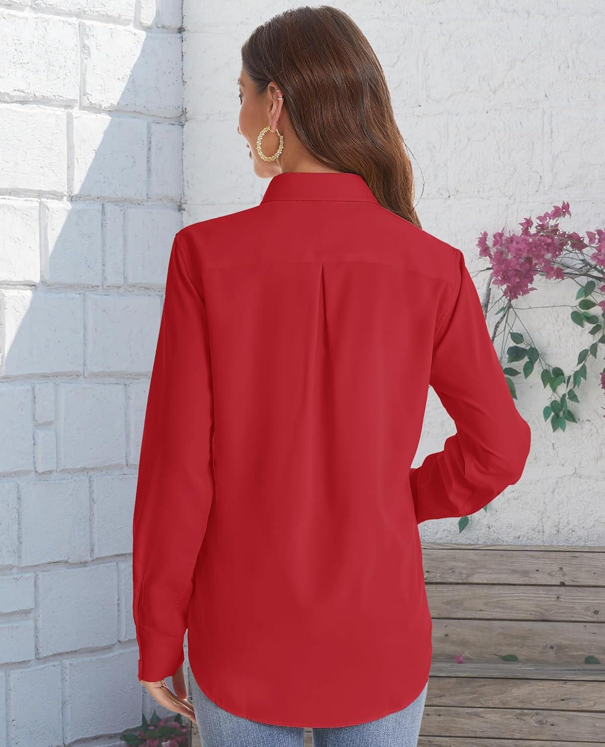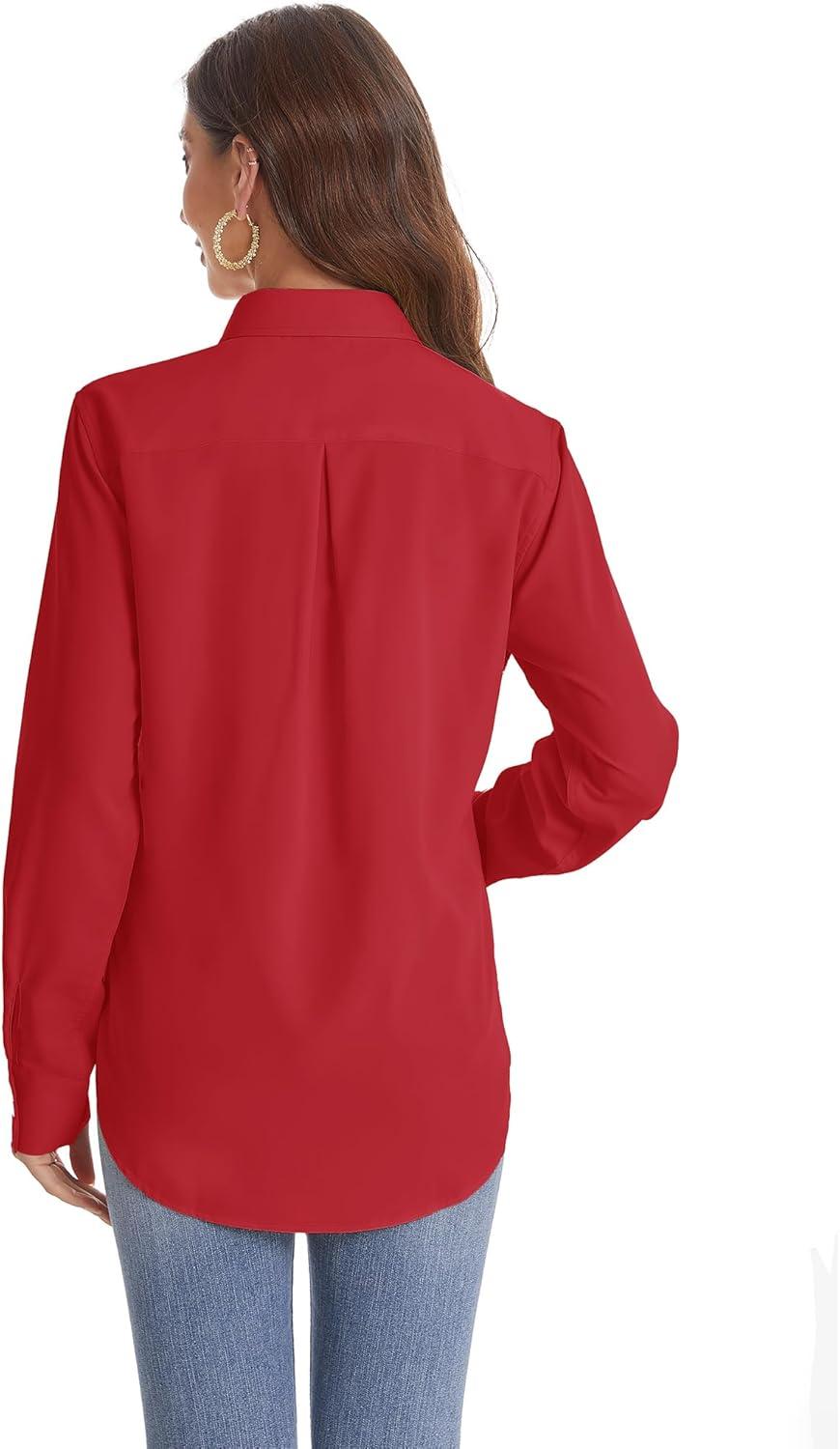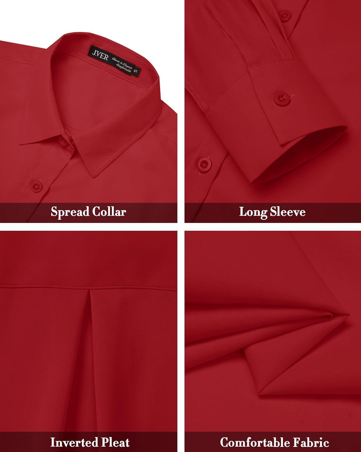 J.VER Women’s Button Down Shirt Long Sleeve Solid Dress Shirts Chiffon Work Office Blouse Fashion Formal Business Casual Tops(Red)