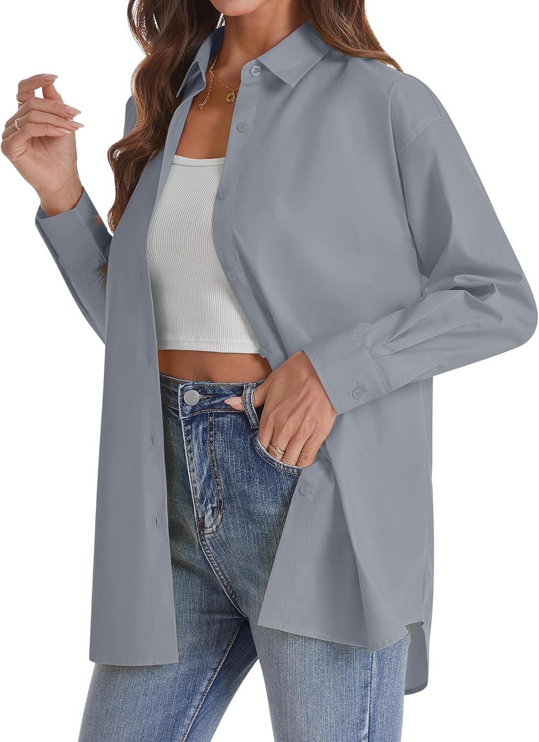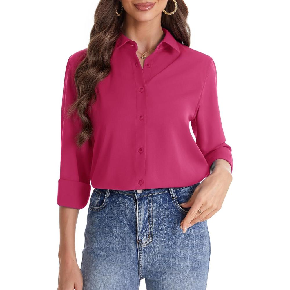 J.VER Women’s Button Down Shirt Long Sleeve Solid Dress Shirts Chiffon Work Office Blouse Fashion Formal Business Casual Tops(Rose Red)