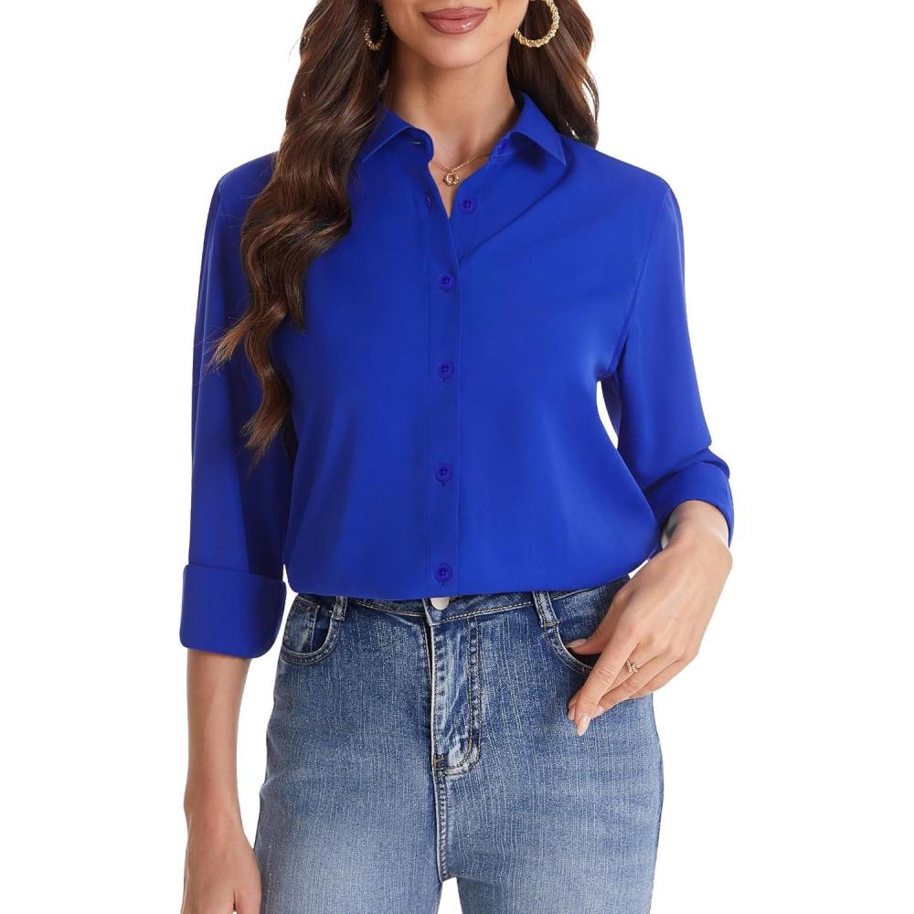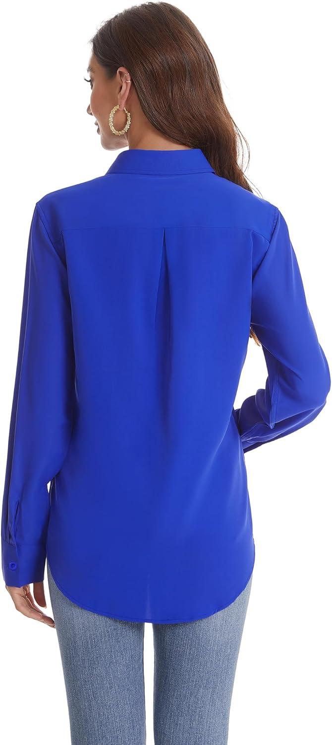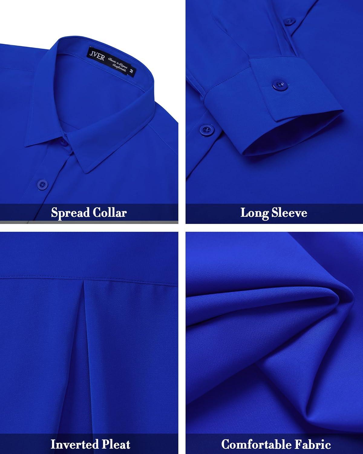 J.VER Women’s Button Down Shirt Long Sleeve Solid Dress Shirts Chiffon Work Office Blouse Fashion Formal Business Casual Tops(Royal Blue)