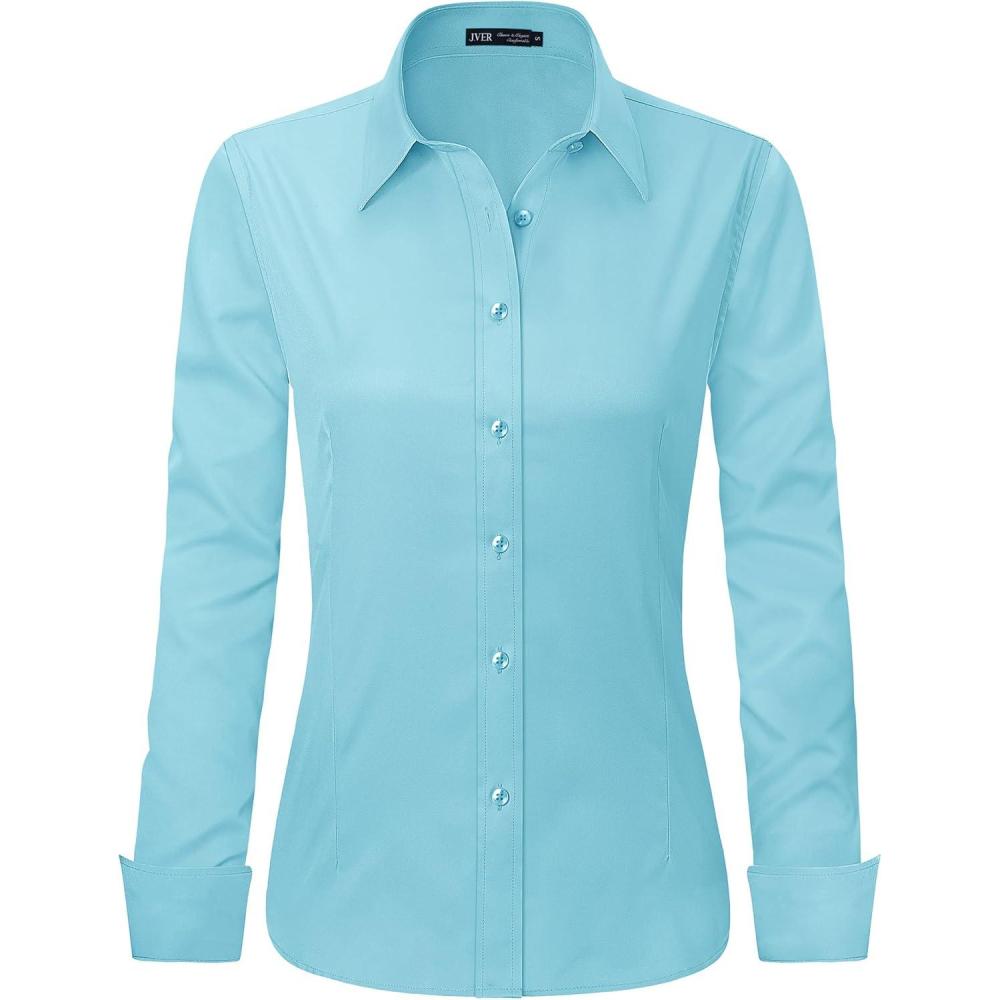J.VER Womens Dress Shirts Long Sleeve Button Down Shirt Wrinkle-Free Business Casual Blouse Office Work Tops(Aqua Blue)