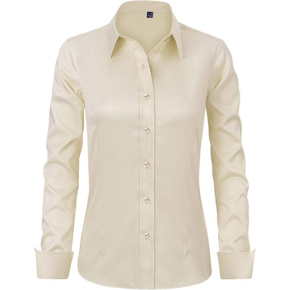 J.VER Womens Dress Shirts Long Sleeve Button Down Shirt Wrinkle-Free Business Casual Blouse Office Work Tops(Beige)