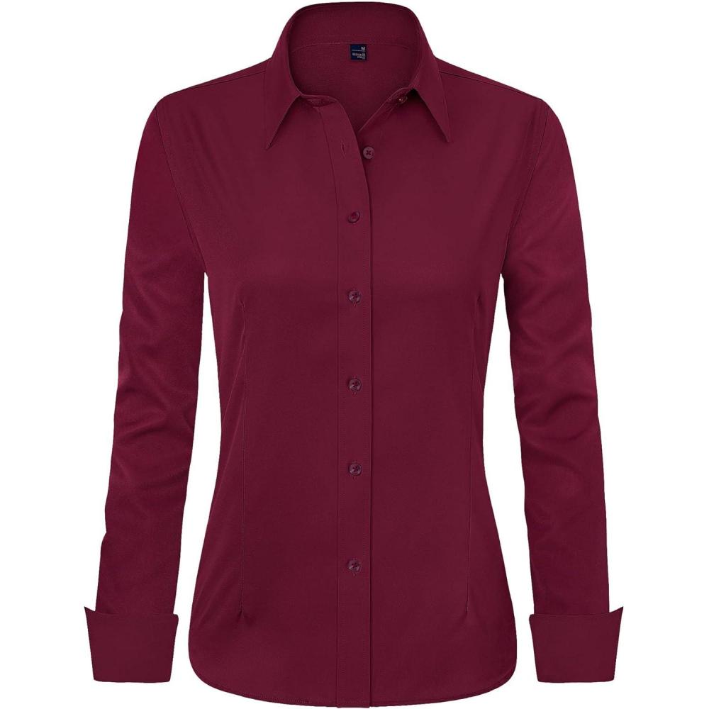 J.VER Womens Dress Shirts Long Sleeve Button Down Shirt Wrinkle-Free Business Casual Blouse Office Work Tops(Burgundy)