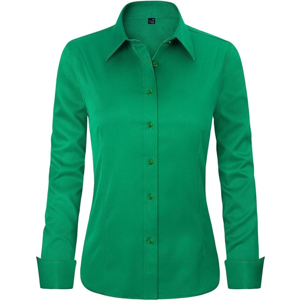 J.VER Womens Dress Shirts Long Sleeve Button Down Shirt Wrinkle-Free Business Casual Blouse Office Work Tops(Dark Green)