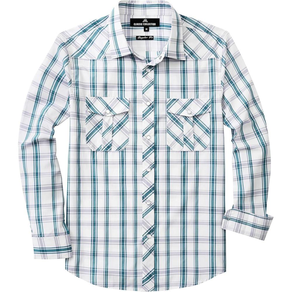 Men’s Plaid Pearl Snap Button Shirts Casual Long Sleeve Checked Shirt Western Cowboy Shirts with Two Pockets for Work