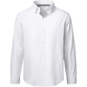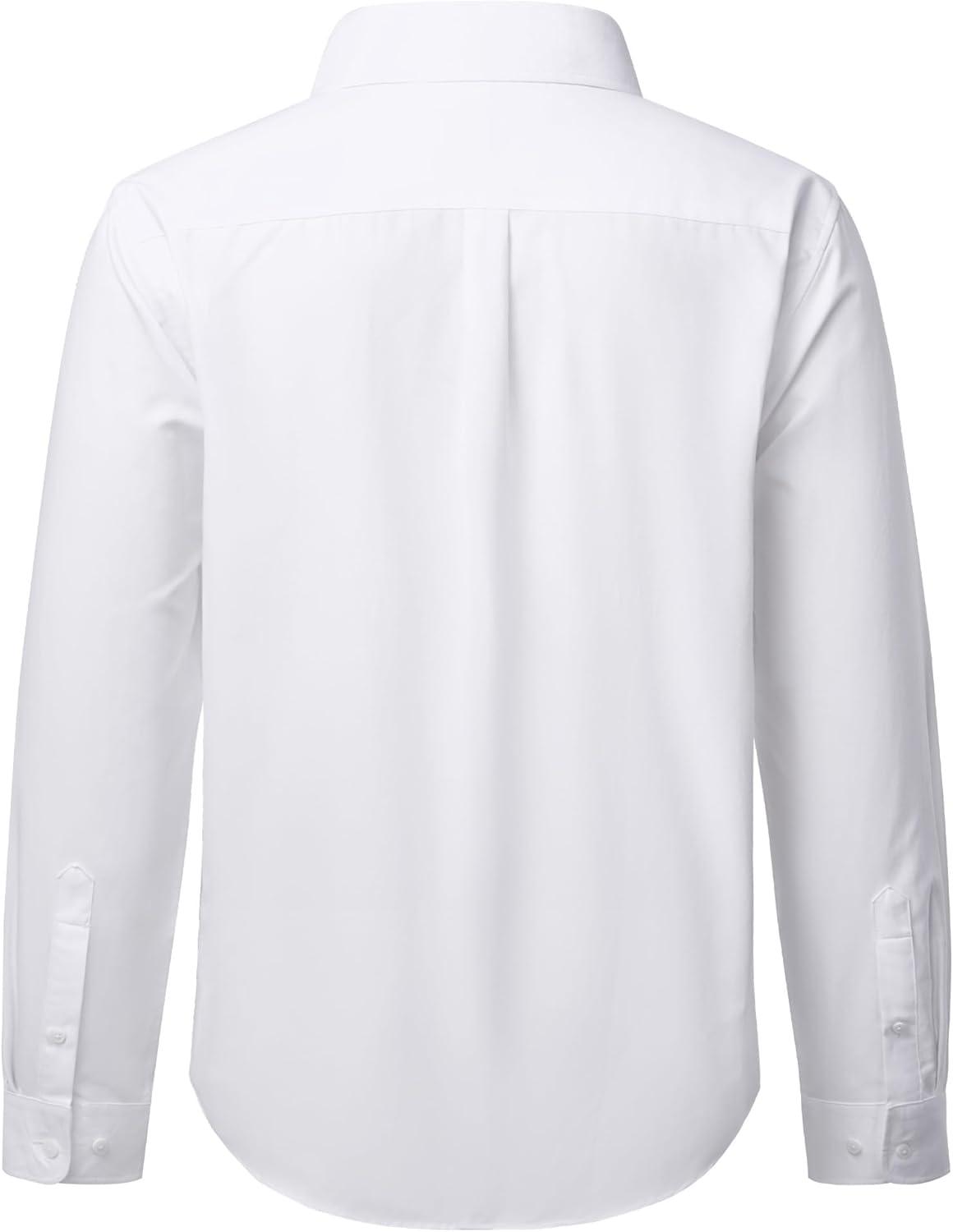 • J.VER Boy’s Long Sleeve Dress Shirts Solid Stretch Wrinkle-Free Shirt Kids Casual Button Down Shirts School Uniform(White)