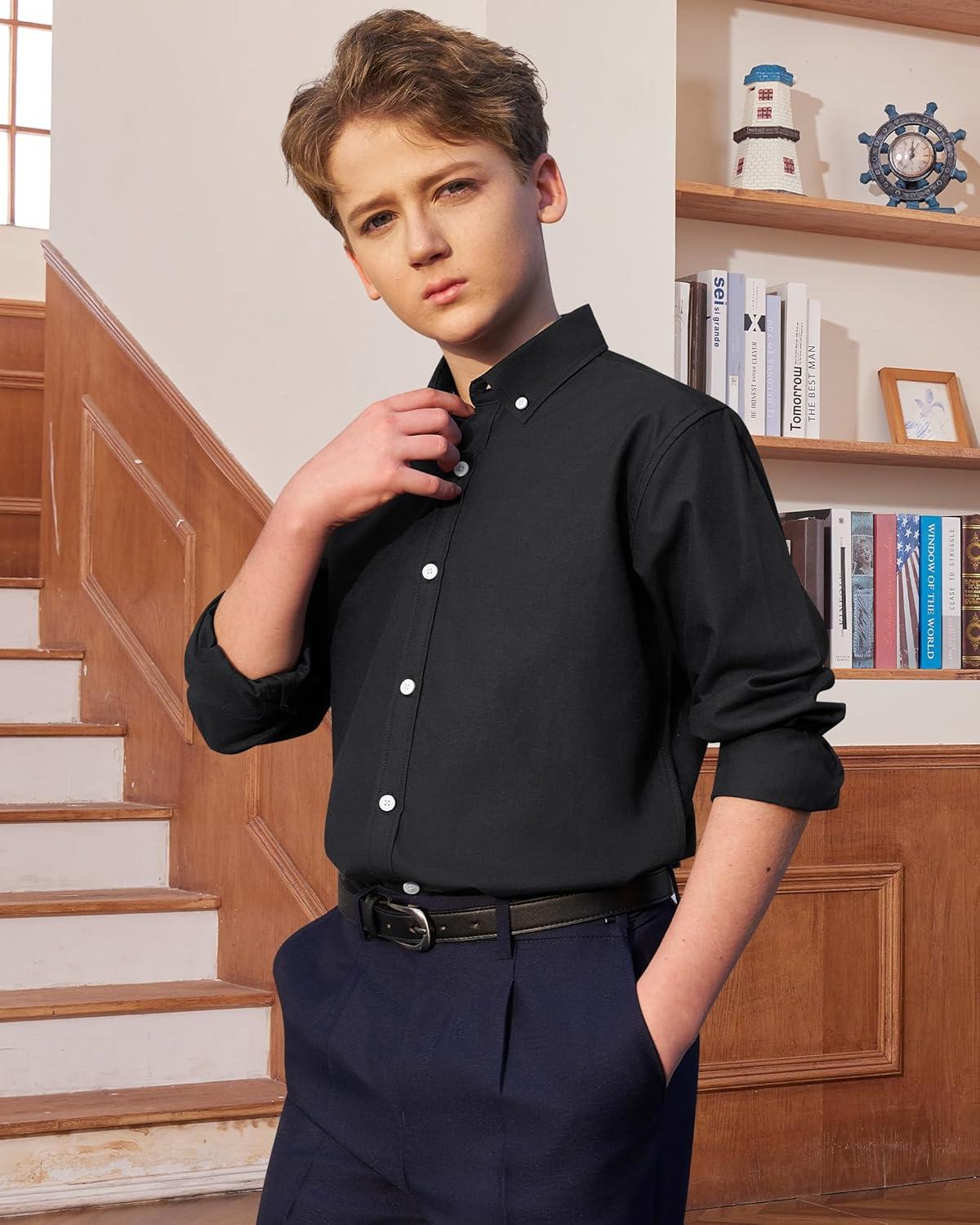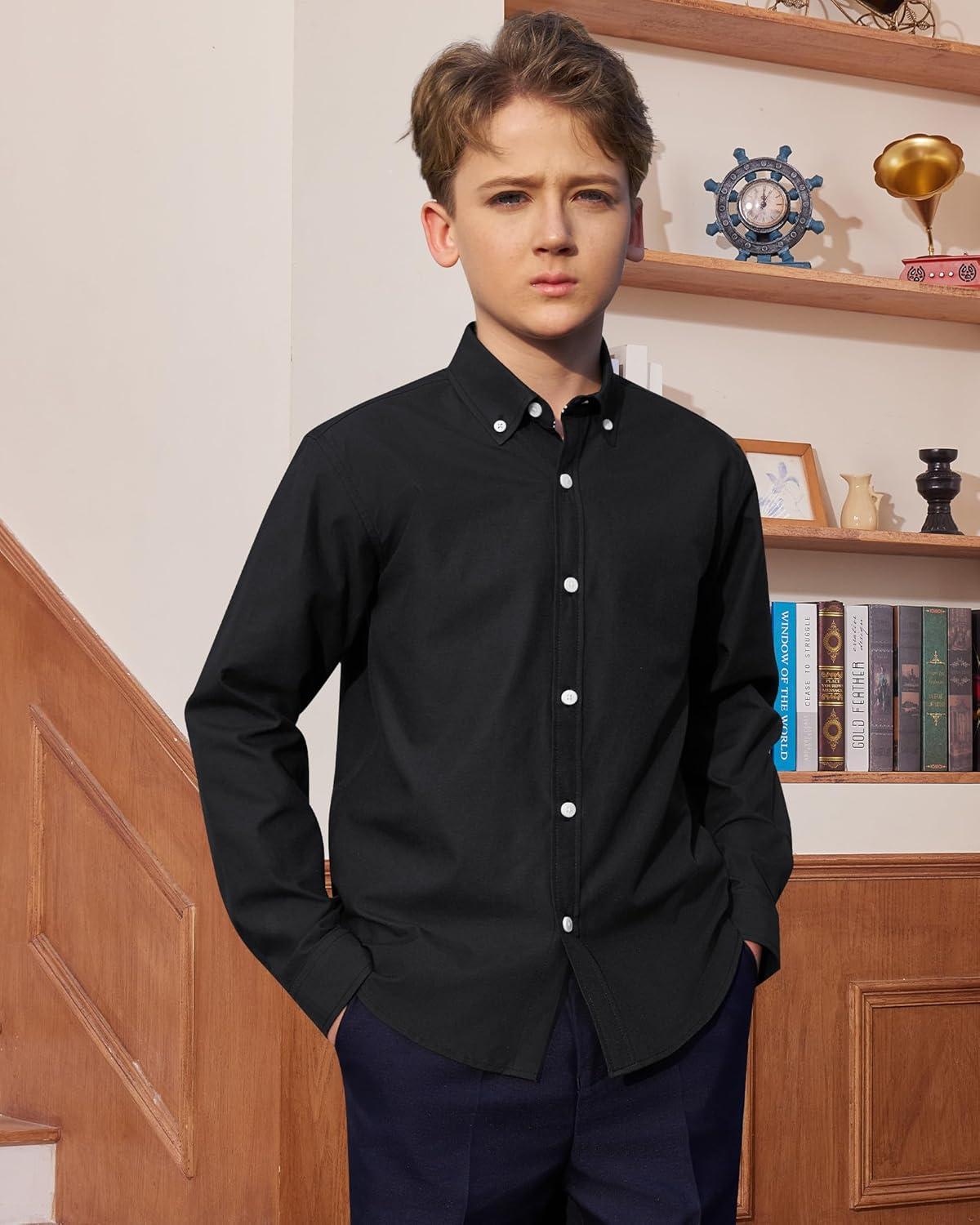 J.VER Boy’s Long Sleeve Oxford Dress Shirts Solid Casual Button Down Collar Shirt Kids Formal Uniform Tops(Black)