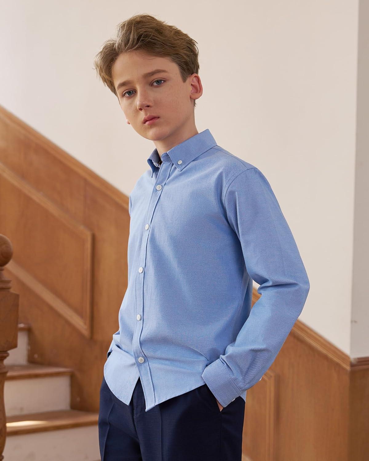 J.VER Boy’s Long Sleeve Oxford Dress Shirts Solid Casual Button Down Collar Shirt Kids Formal Uniform Tops(Blue)