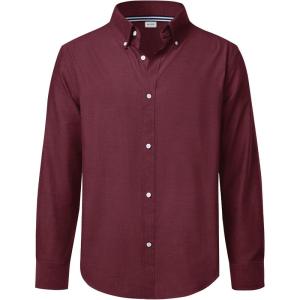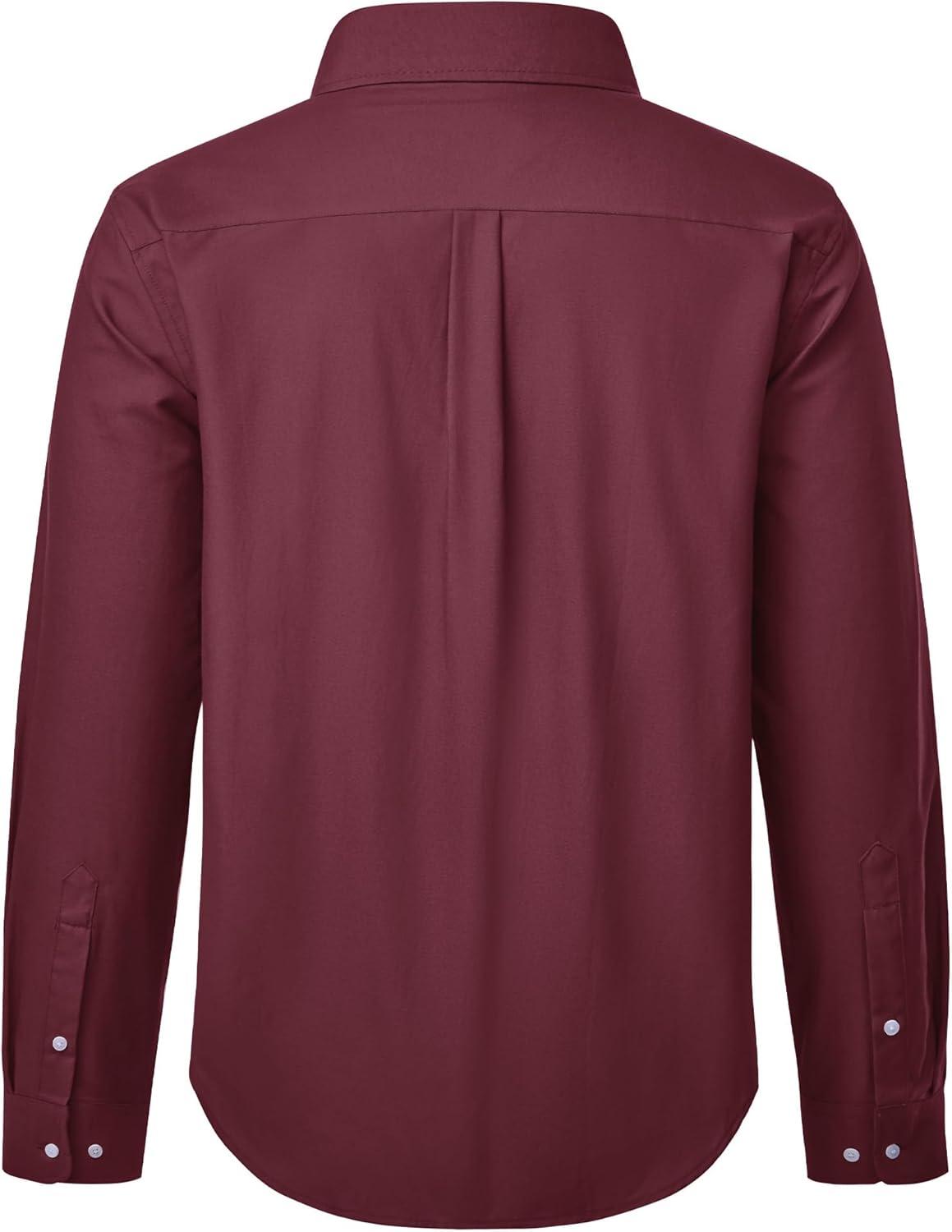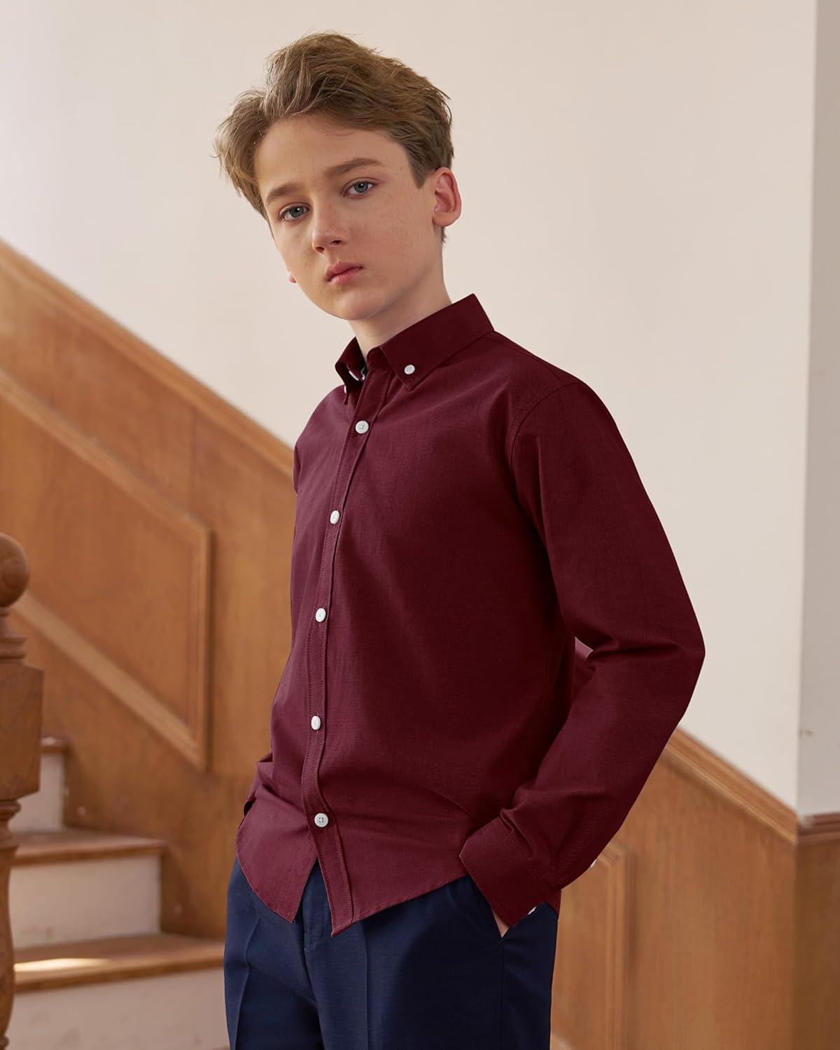 • J.VER Boy’s Long Sleeve Oxford Dress Shirts Solid Casual Button Down Collar Shirt Kids Formal Uniform Tops(Burgundy)
