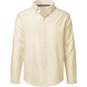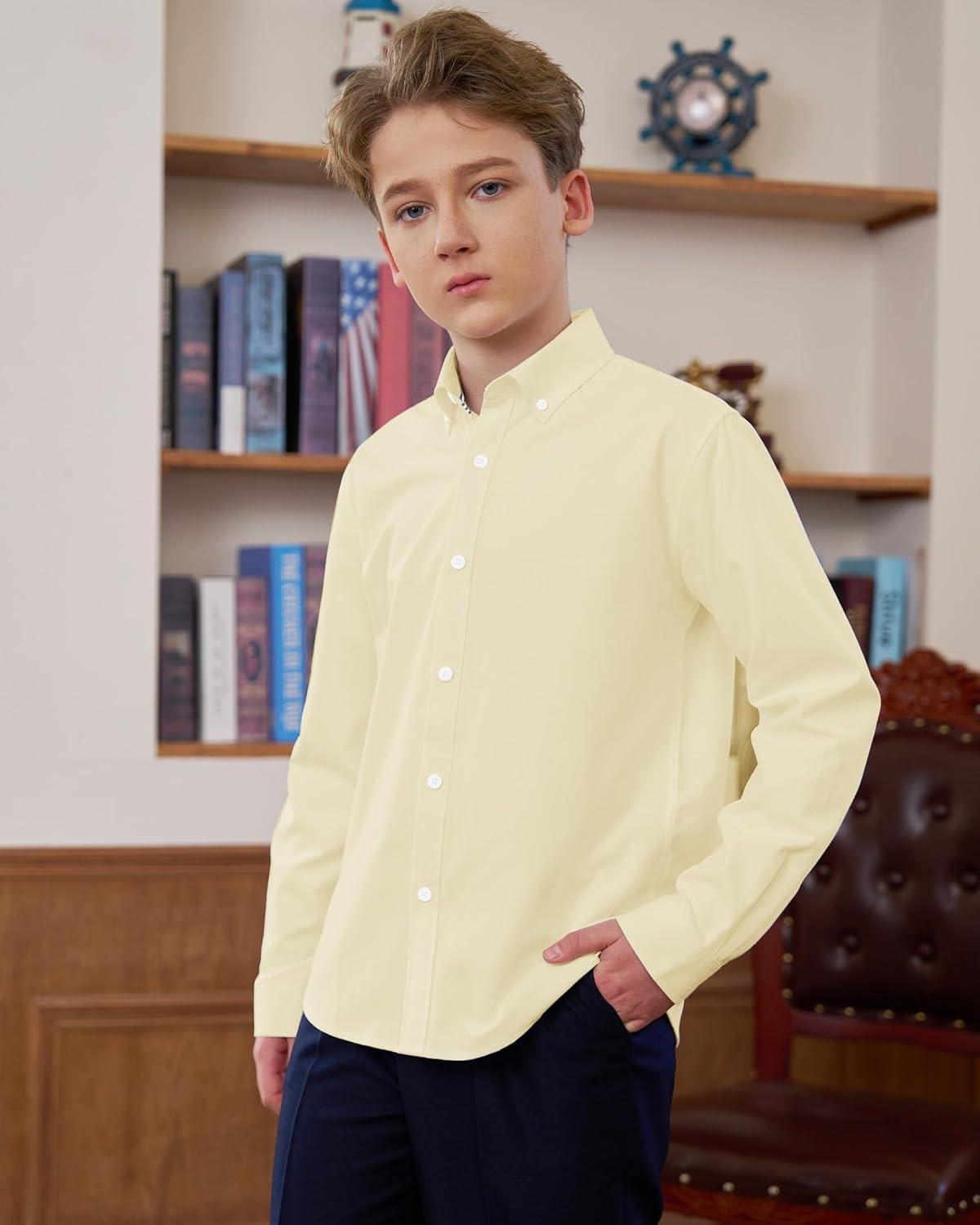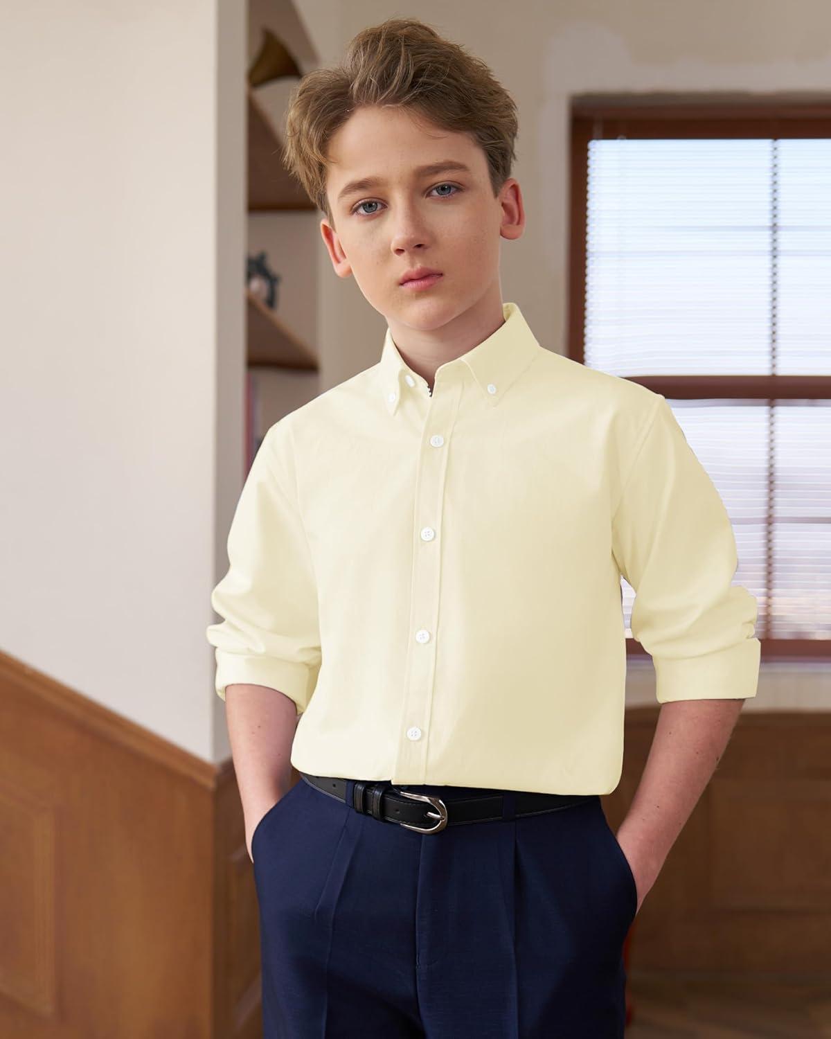 • J.VER Boy’s Long Sleeve Oxford Dress Shirts Solid Casual Button Down Collar Shirt Kids Formal Uniform Tops(Yellow)