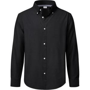 • J.VER Boy’s Long Sleeve Oxford Dress Shirts Solid Casual Button Down Collar Shirt Kids Formal Uniform Tops(Black)