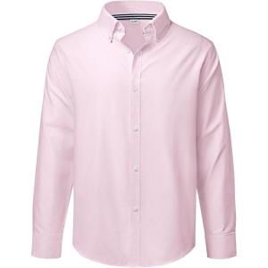 • J.VER Boy’s Long Sleeve Oxford Dress Shirts Solid Casual Button Down Collar Shirt Kids Formal Uniform Tops(Light Pink)