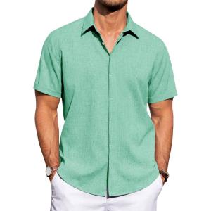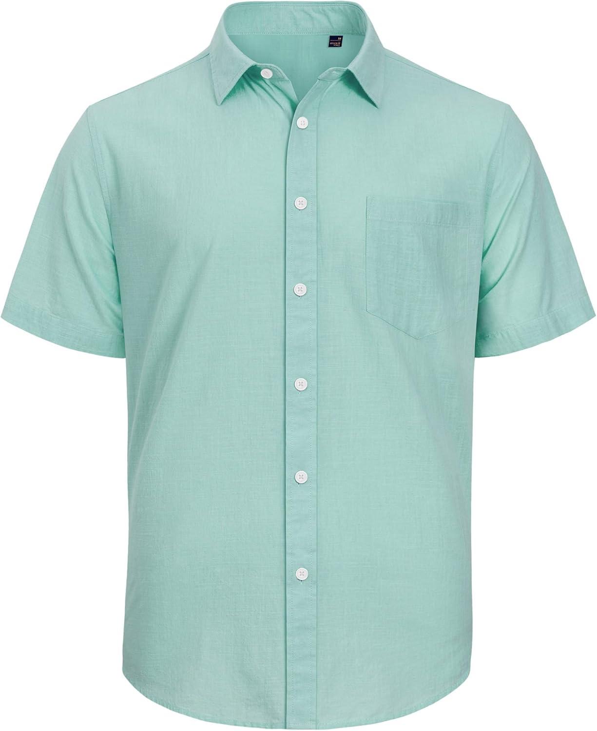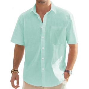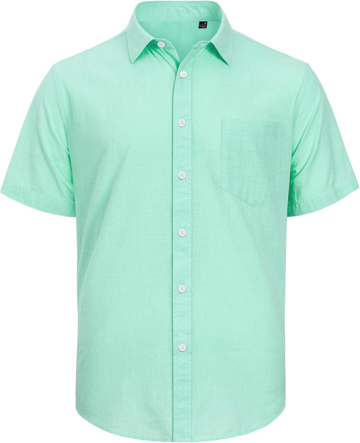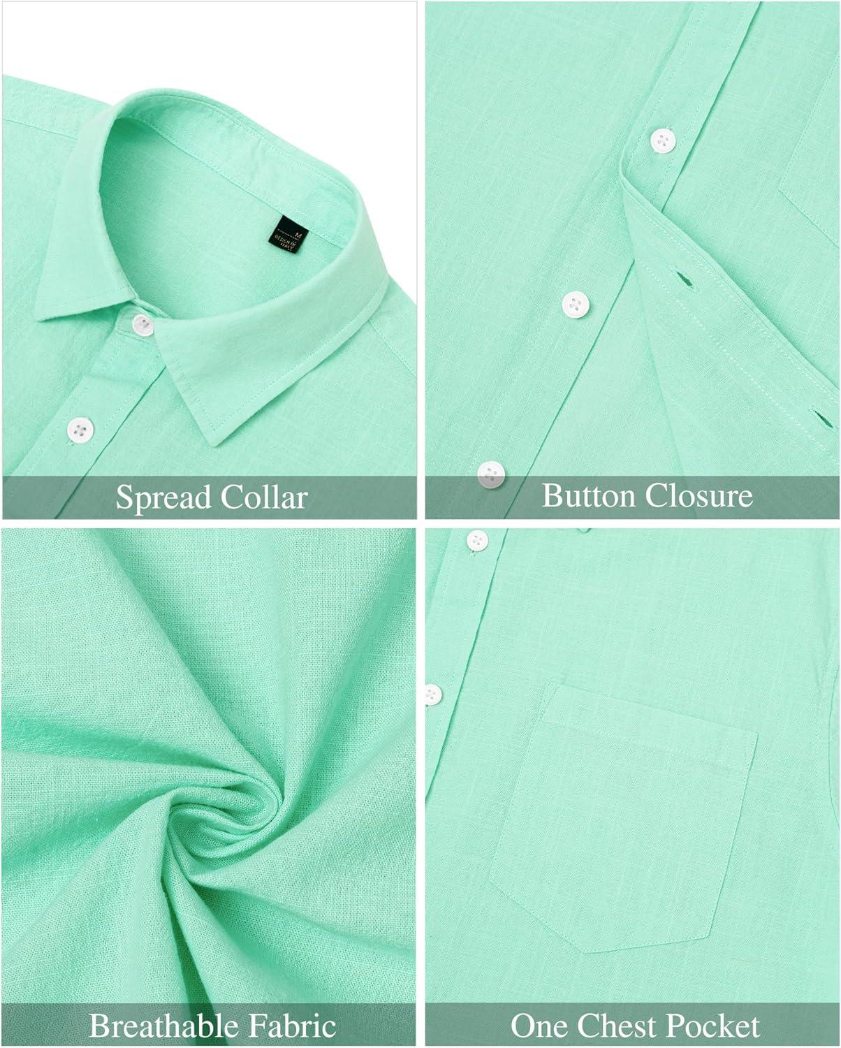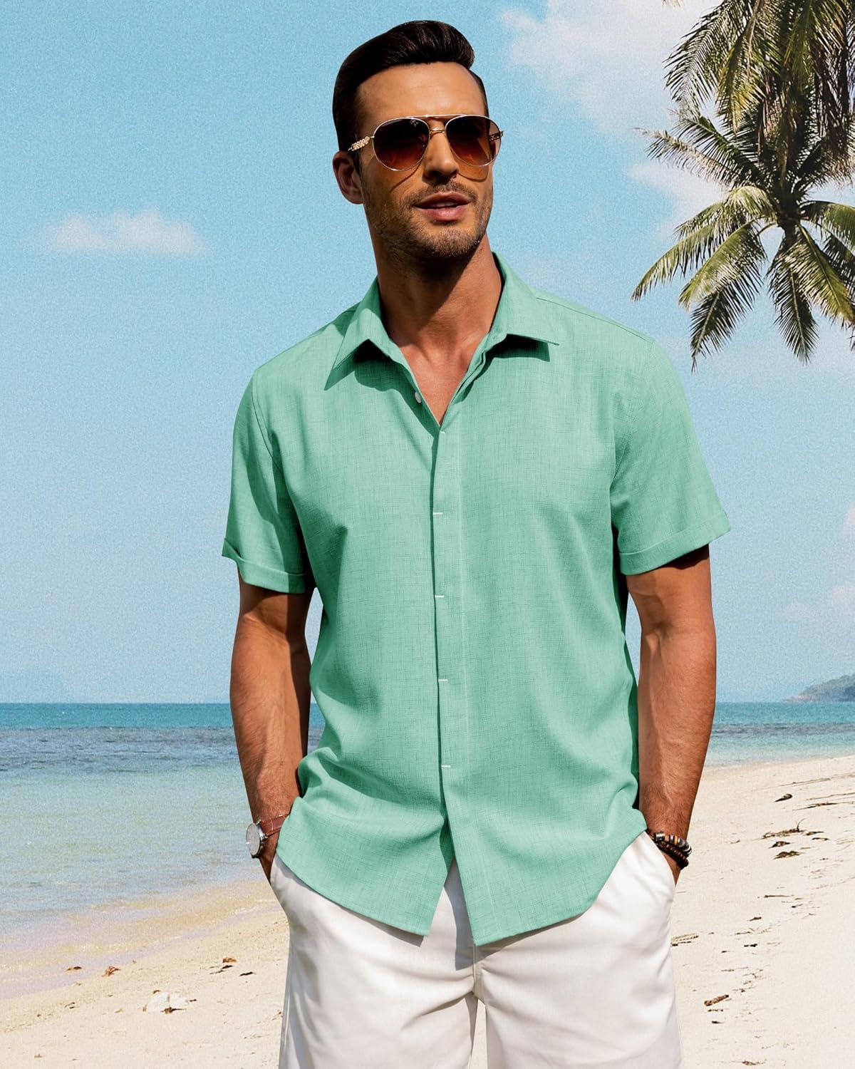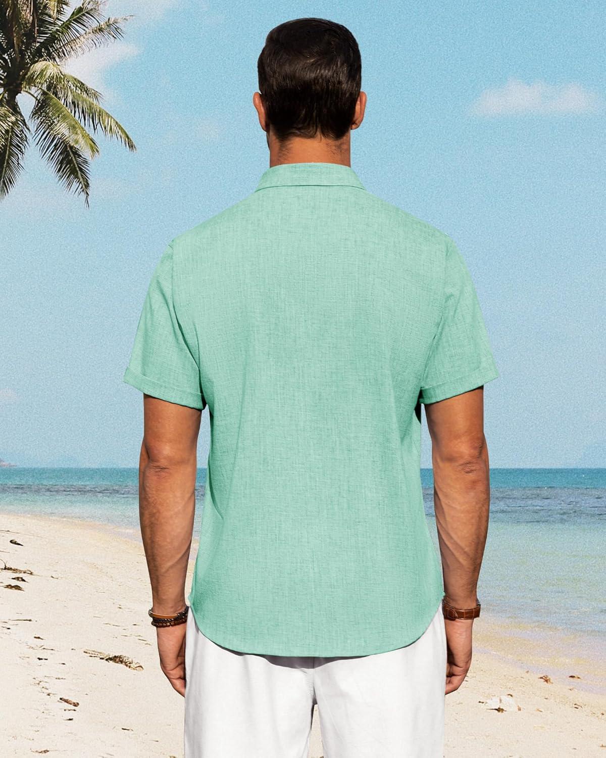Mens Linen Shirts Short Sleeve Button Down Shirt Casual Cuban Guayabera Lightweight Summer Beach Solid Tops(Mint Green)