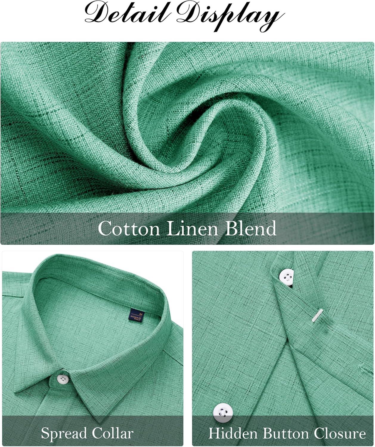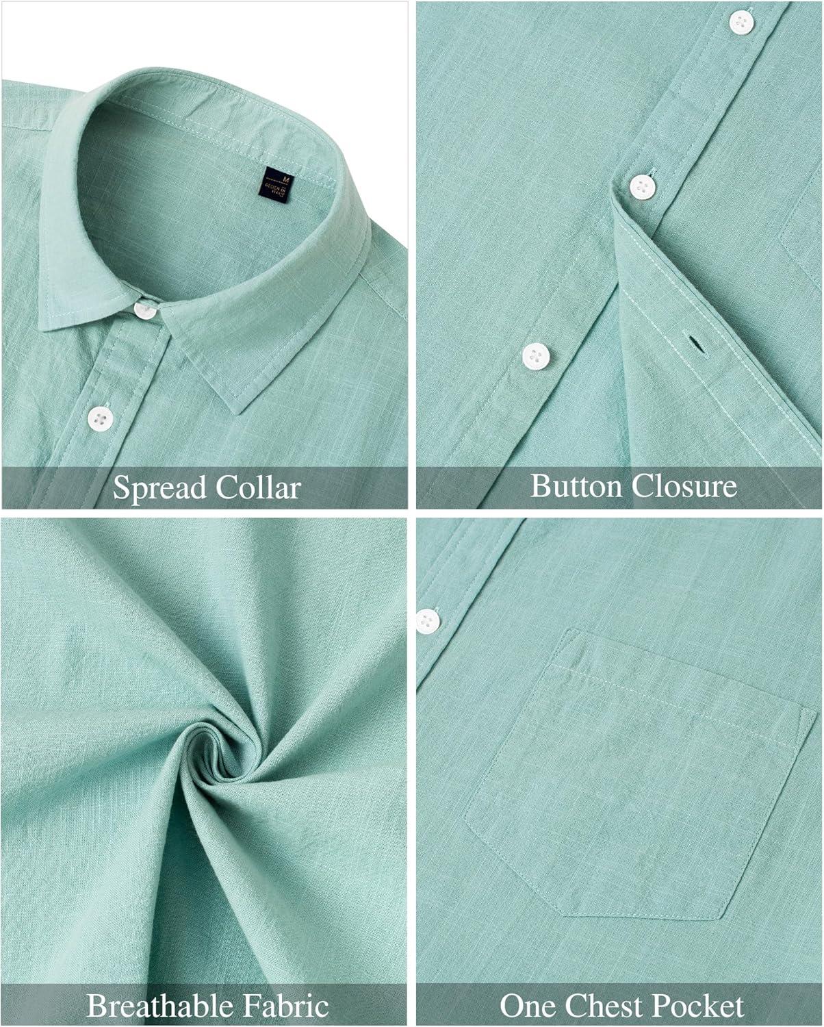 Mens Linen Shirts Short Sleeve Button Down Shirt Casual Cuban Guayabera Lightweight Summer Beach Solid Tops(Lawn Green)