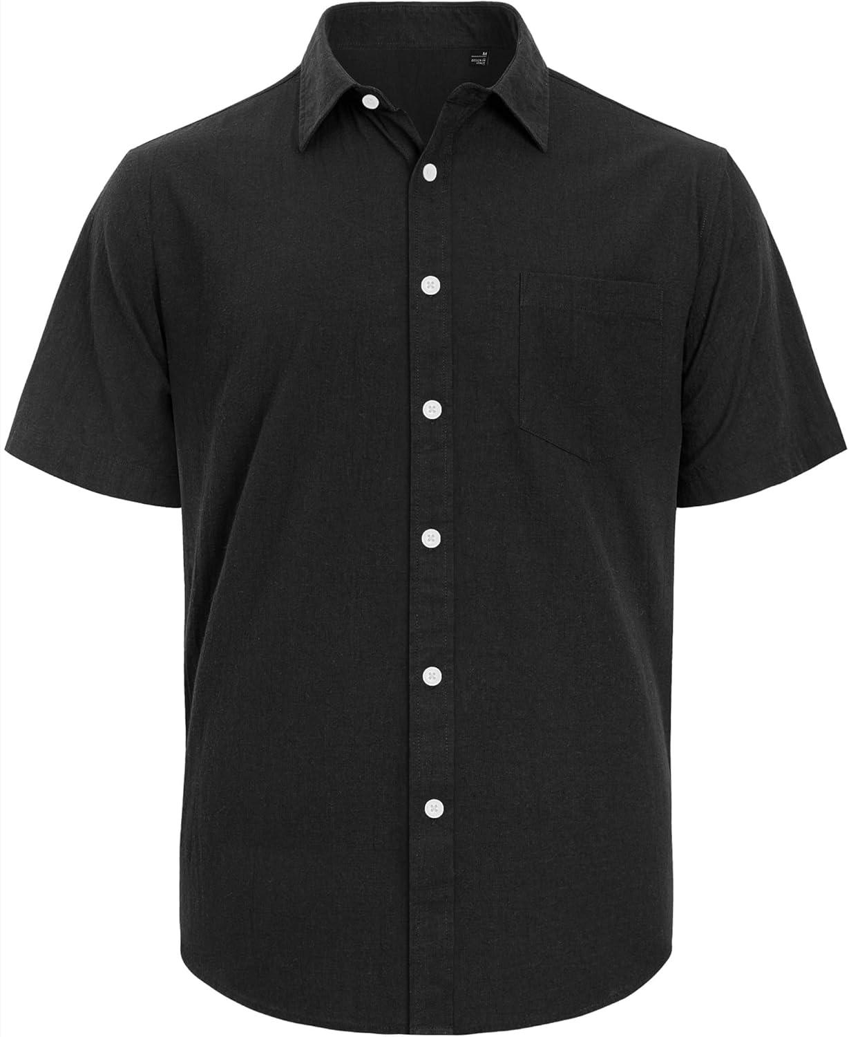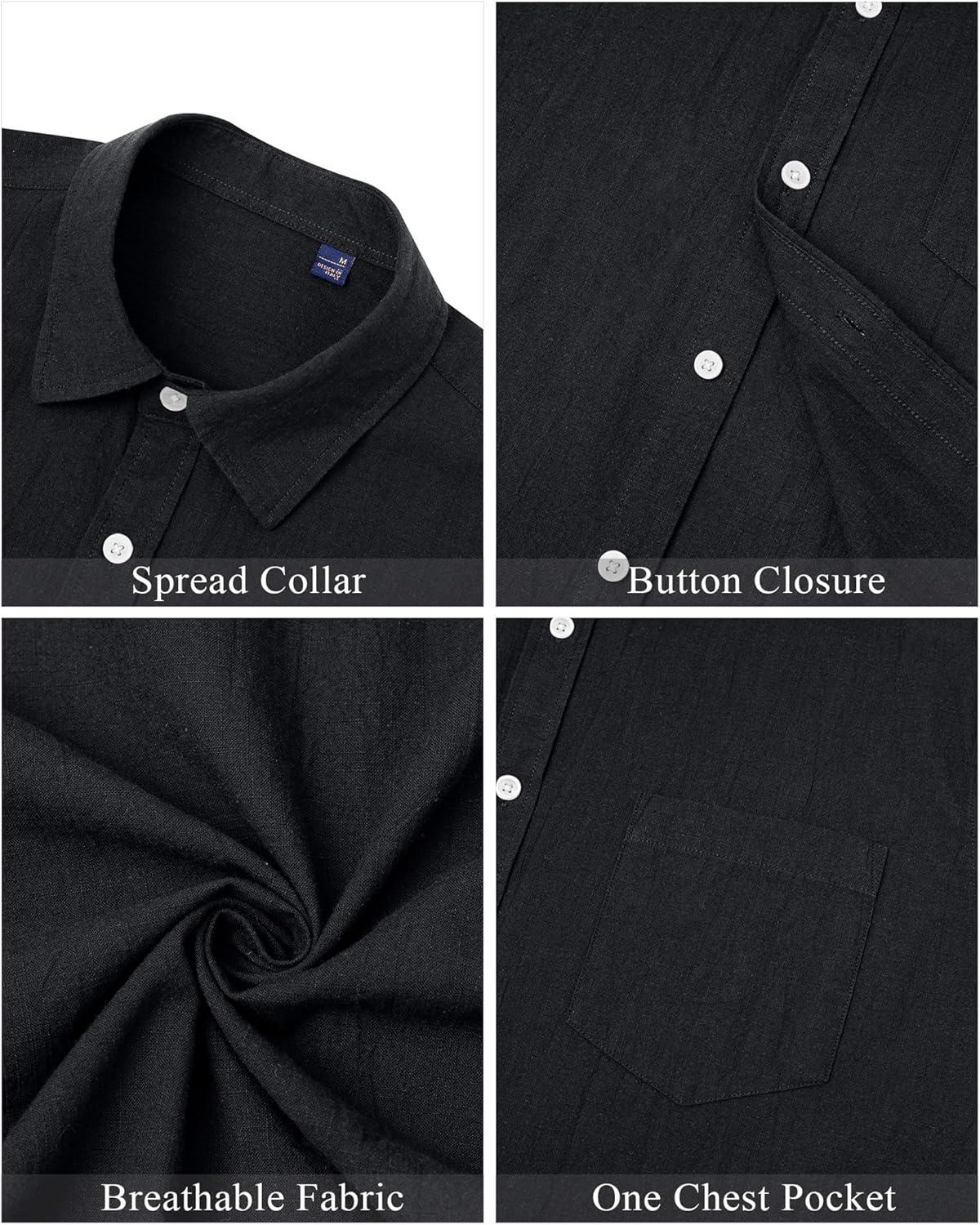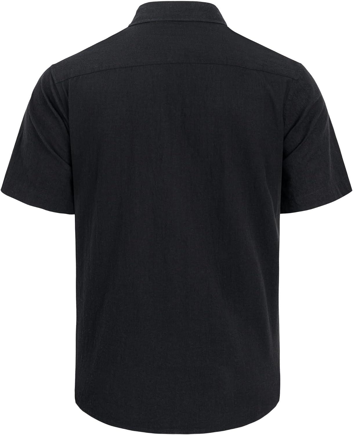 Mens Linen Shirts Short Sleeve Button Down Shirt Casual Cuban Guayabera Lightweight Summer Beach Solid Tops(Black)