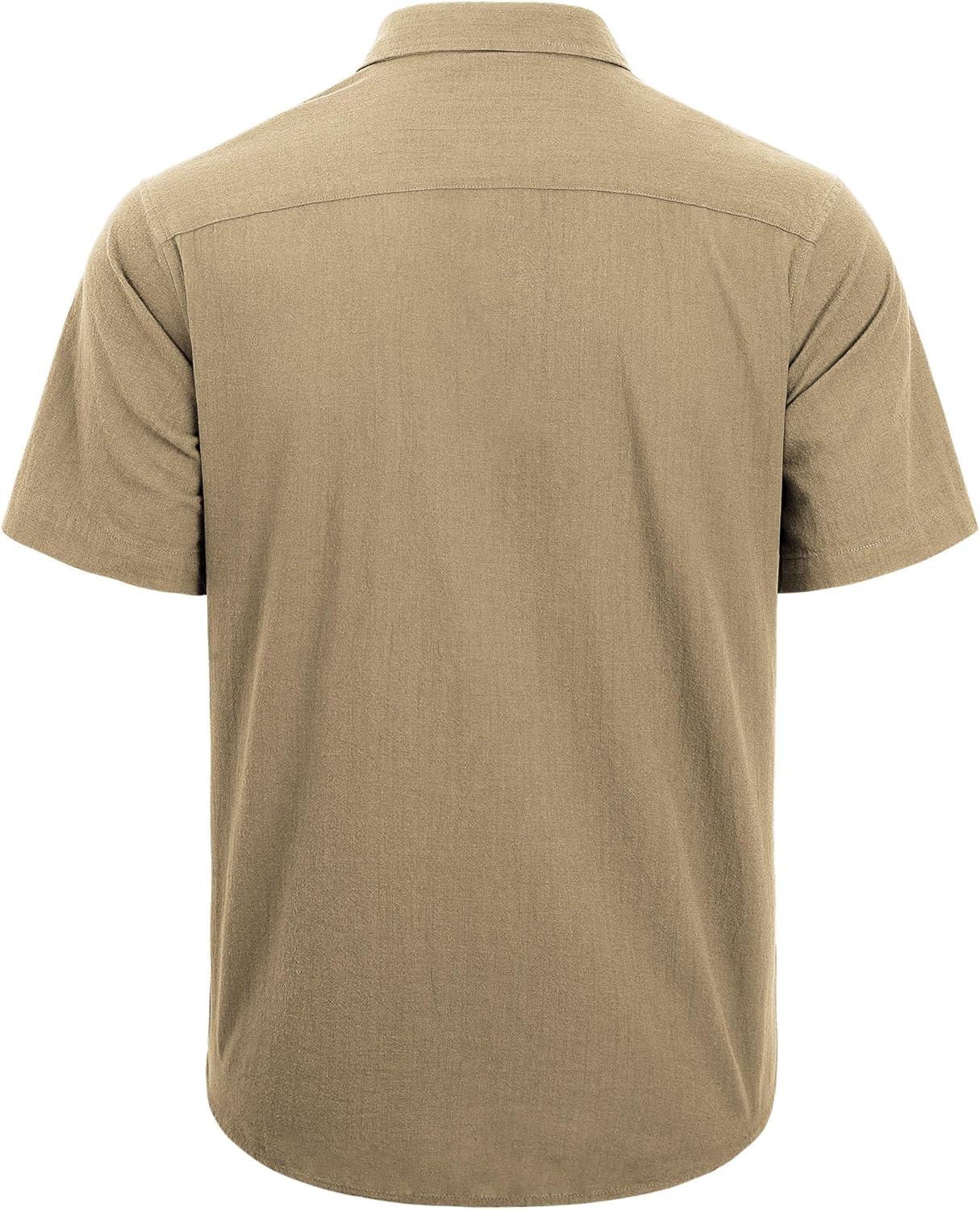 Mens Linen Shirts Short Sleeve Button Down Shirt Casual Cuban Guayabera Lightweight Summer Beach Solid Tops(Dark Khaki)