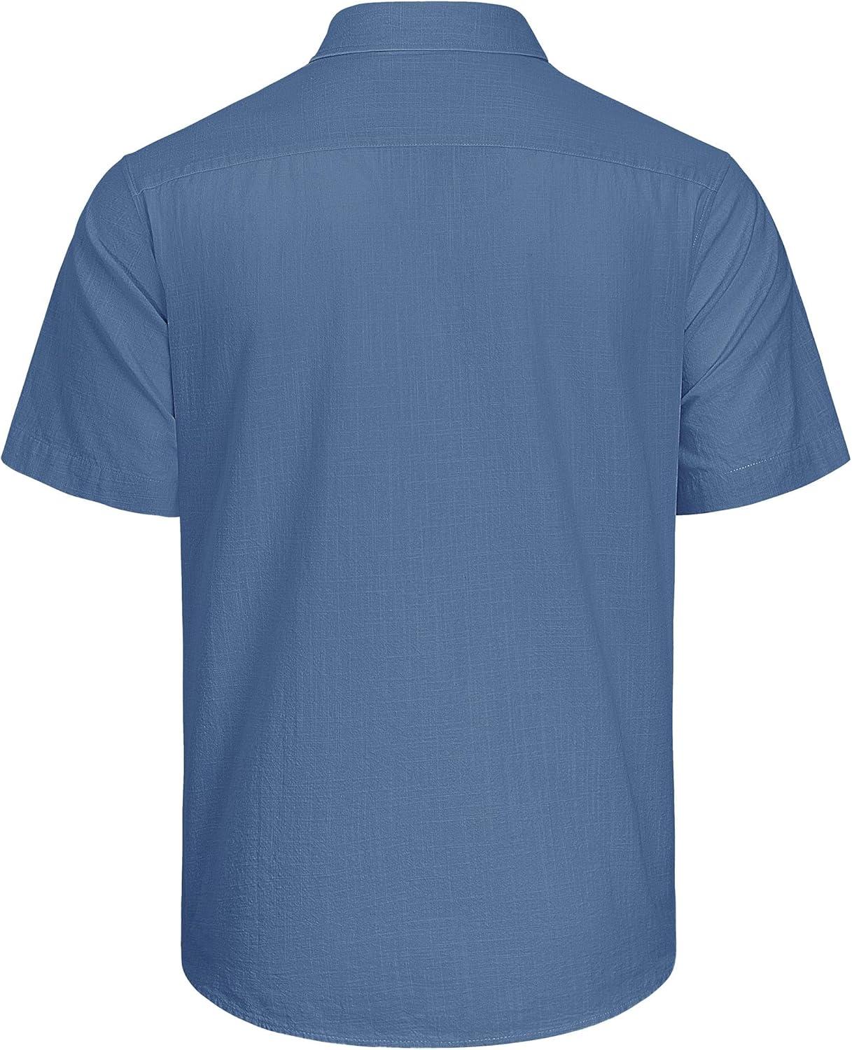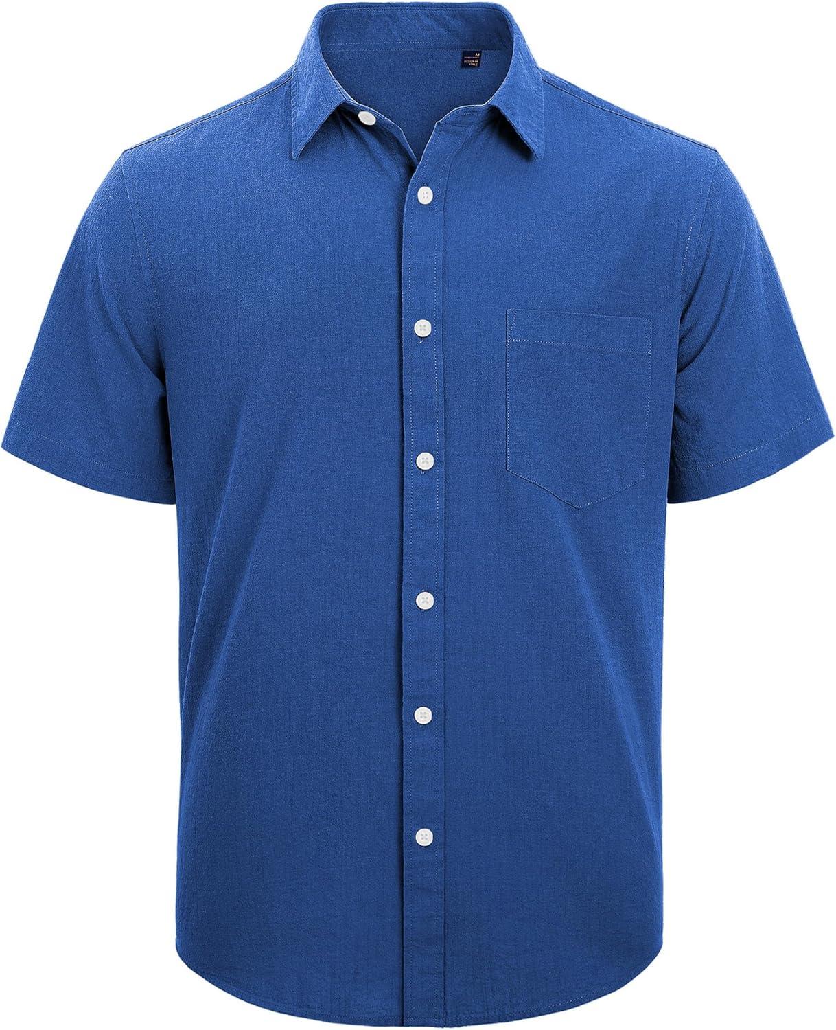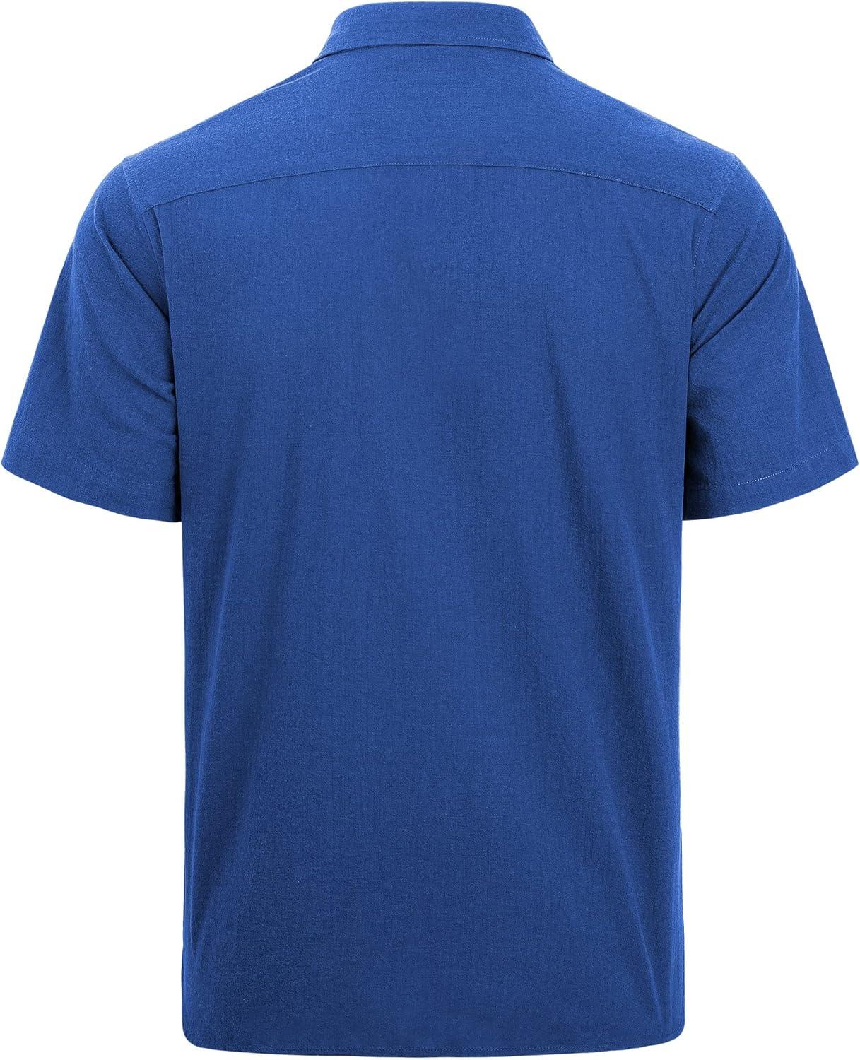 Mens Linen Shirts Short Sleeve Button Down Shirt Casual Cuban Guayabera Lightweight Summer Beach Solid Tops(Cobalt Blue)