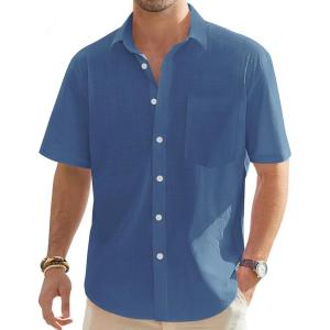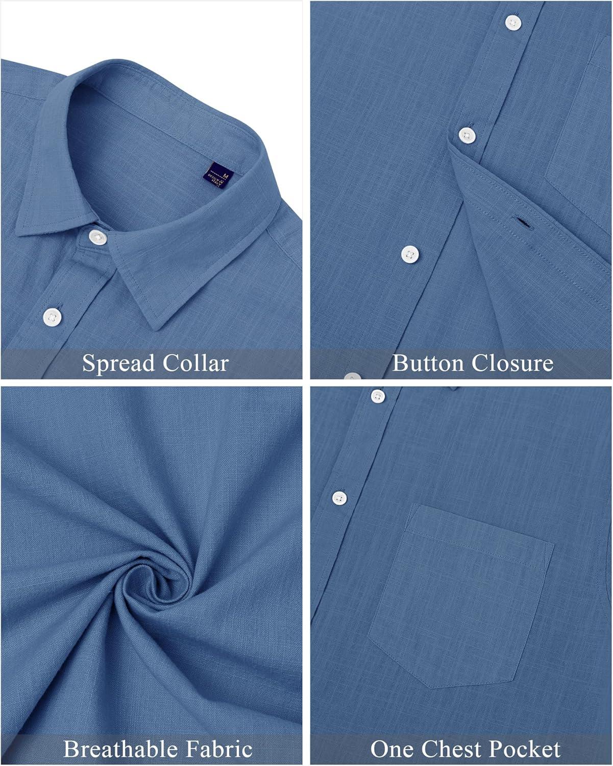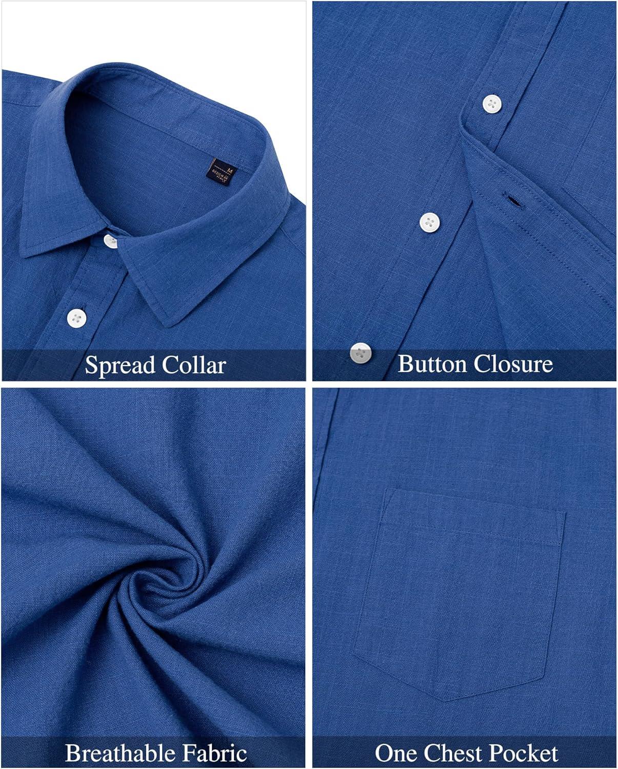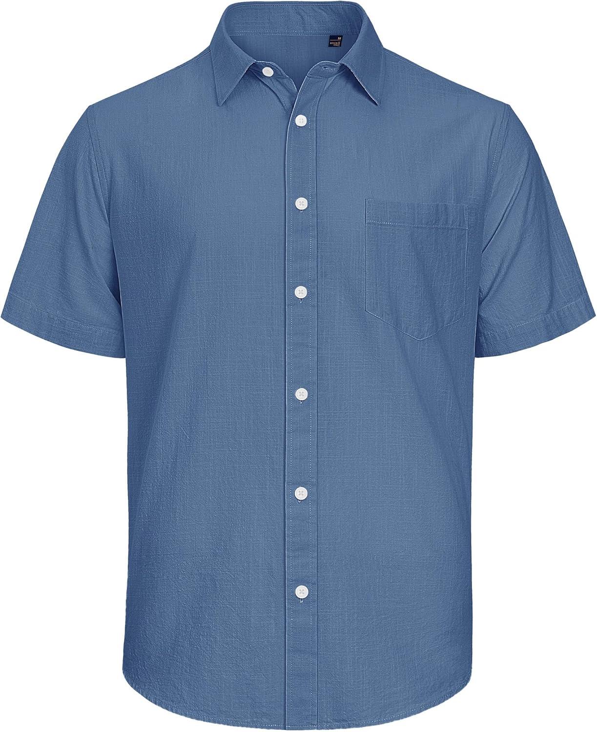 Mens Linen Shirts Short Sleeve Button Down Shirt Casual Cuban Guayabera Lightweight Summer Beach Solid Tops(Cobalt Blue)