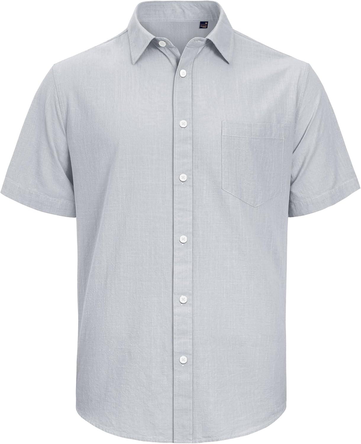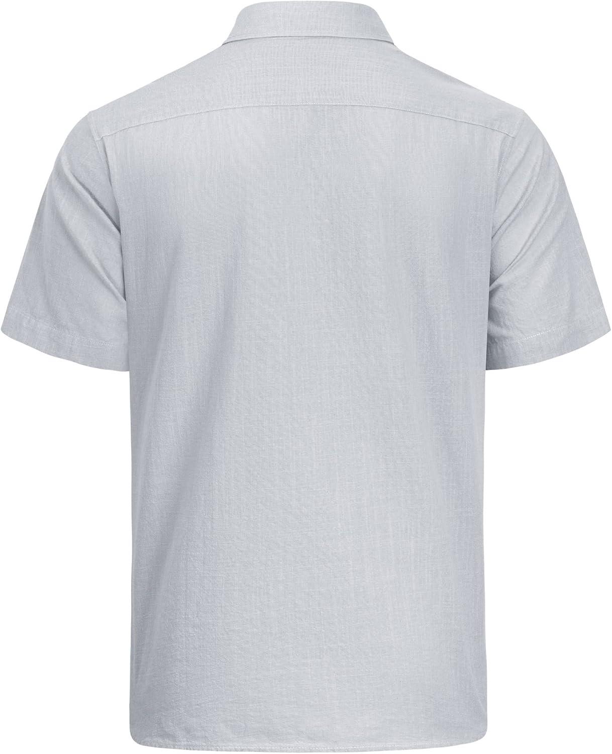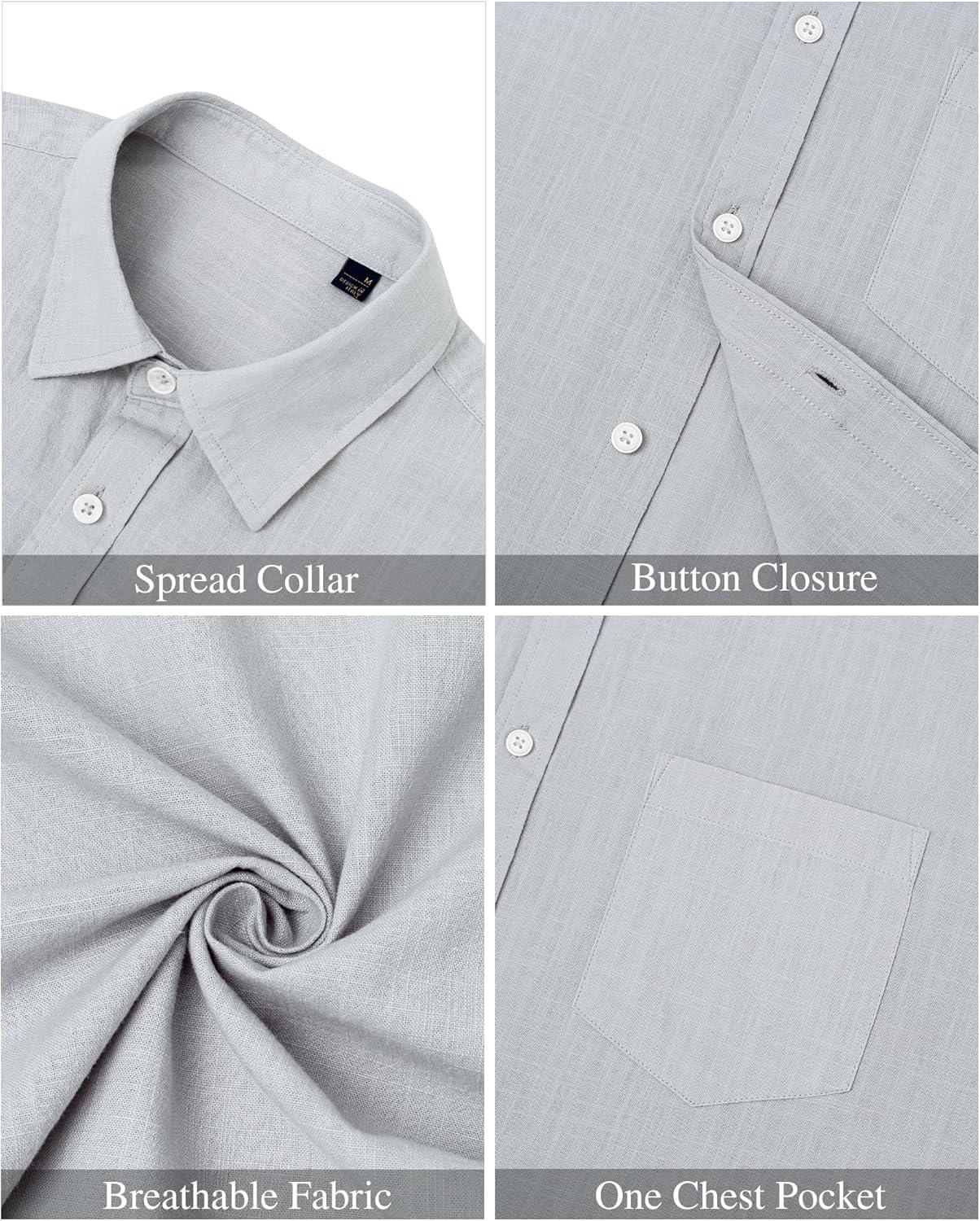 Mens Linen Shirts Short Sleeve Button Down Shirt Casual Cuban Guayabera Lightweight Summer Beach Solid Tops(Grey)