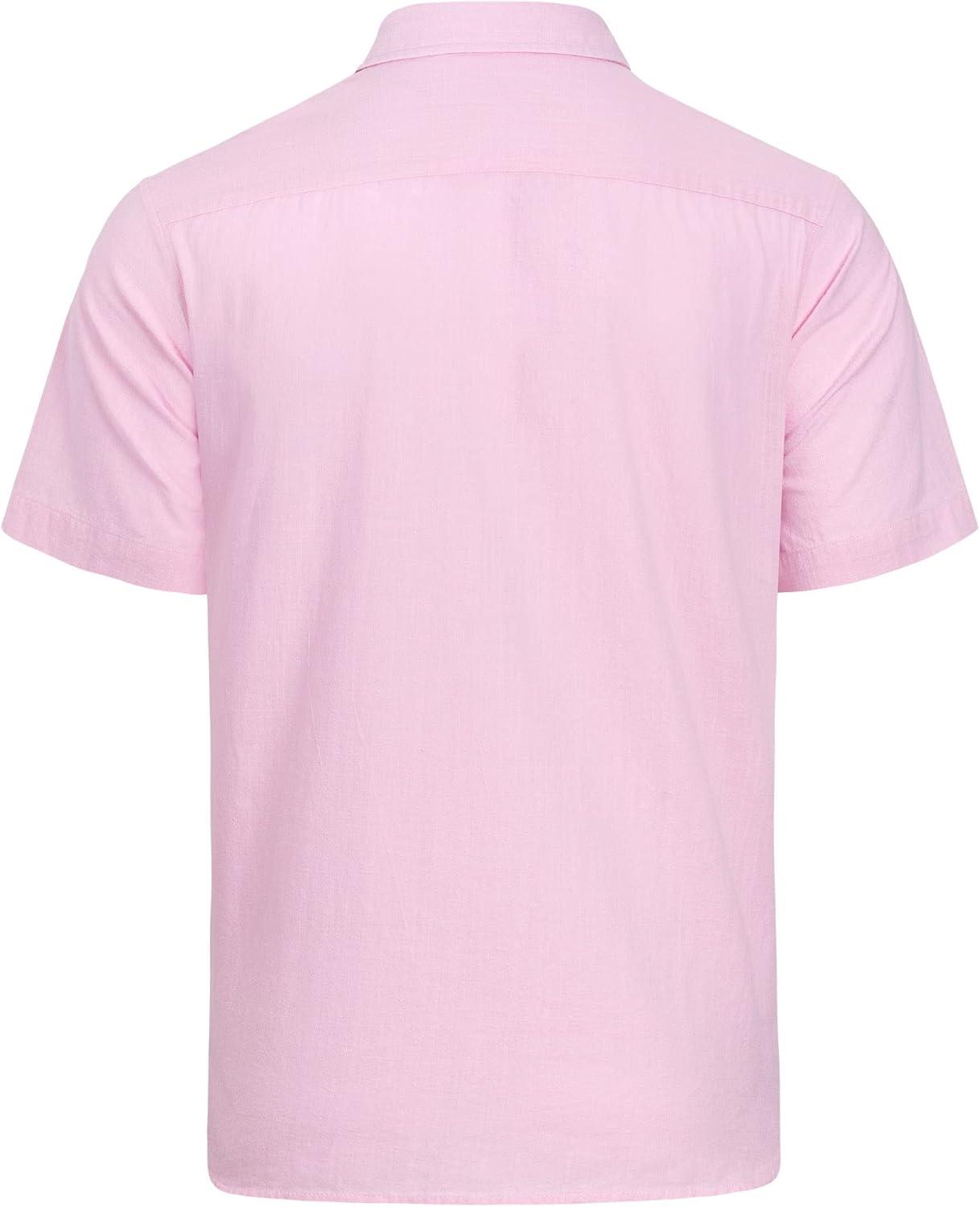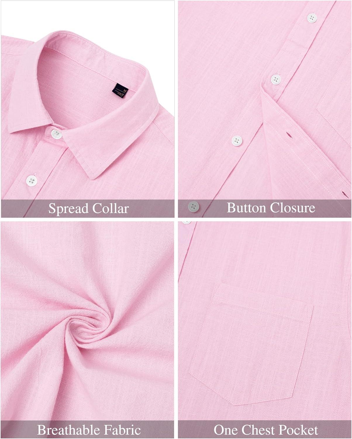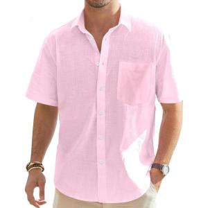 Mens Linen Shirts Short Sleeve Button Down Shirt Casual Cuban Guayabera Lightweight Summer Beach Solid Tops(Light Pink)