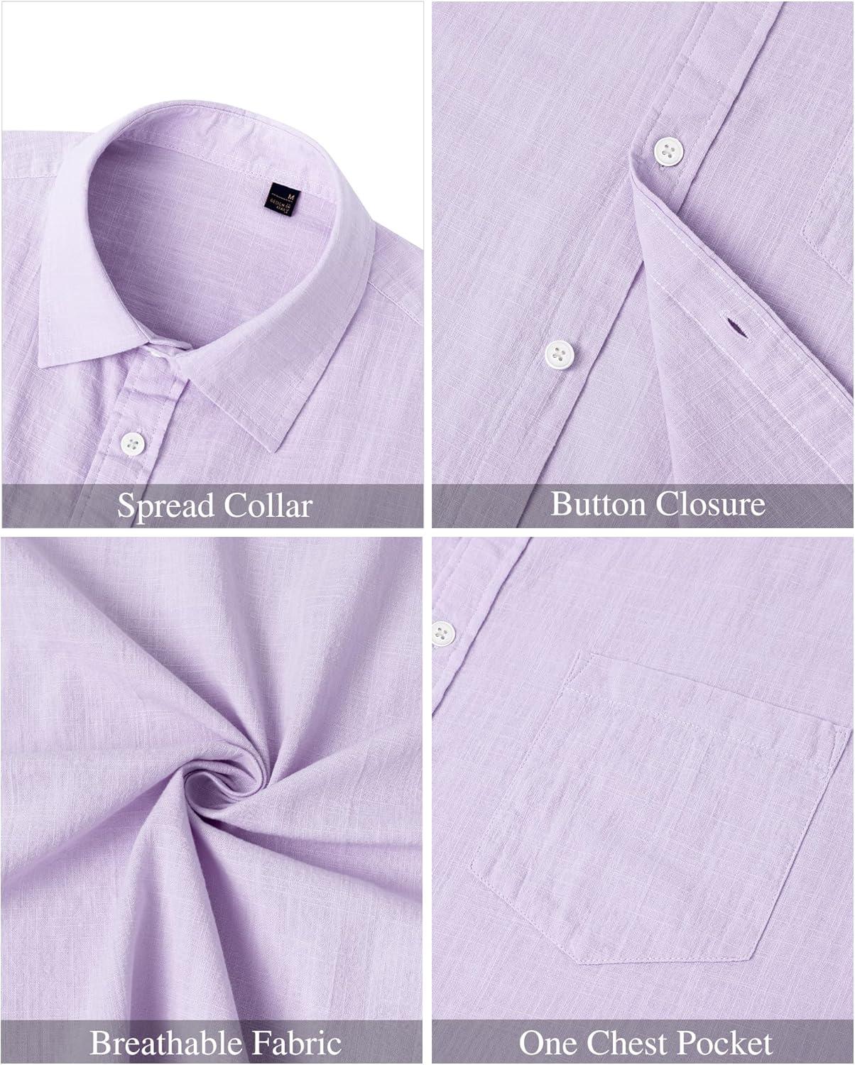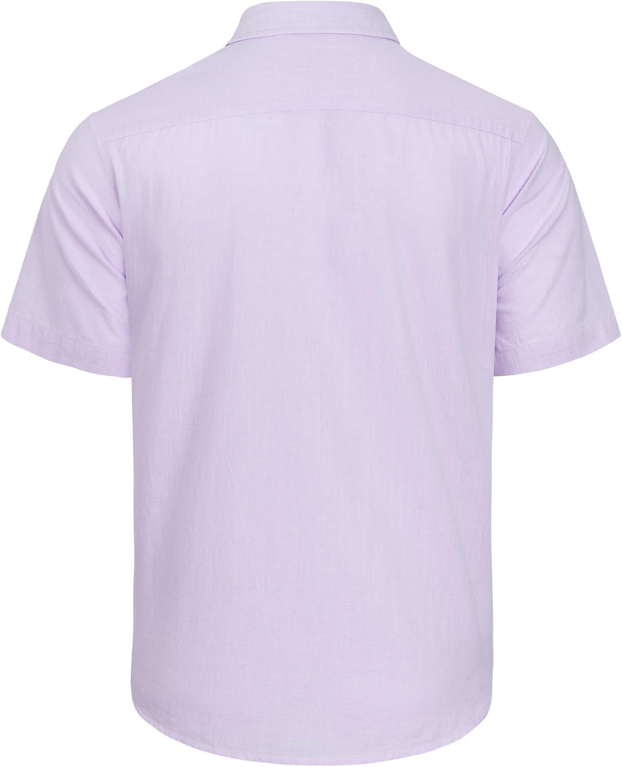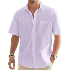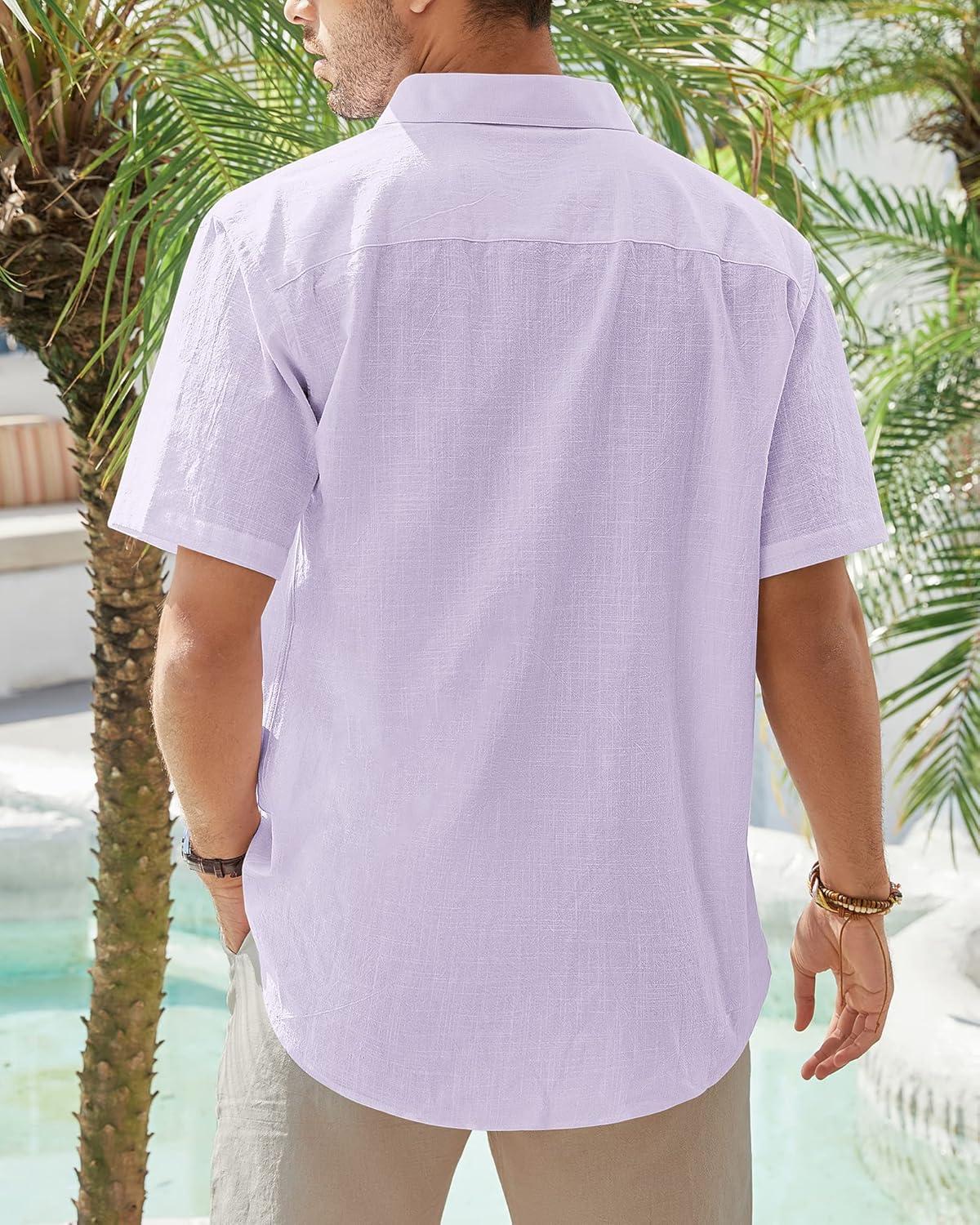Mens Linen Shirts Short Sleeve Button Down Shirt Casual Cuban Guayabera Lightweight Summer Beach Solid Tops(Light Purple)