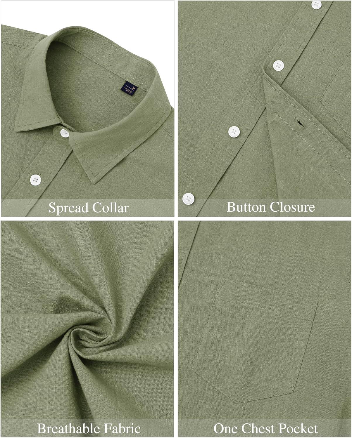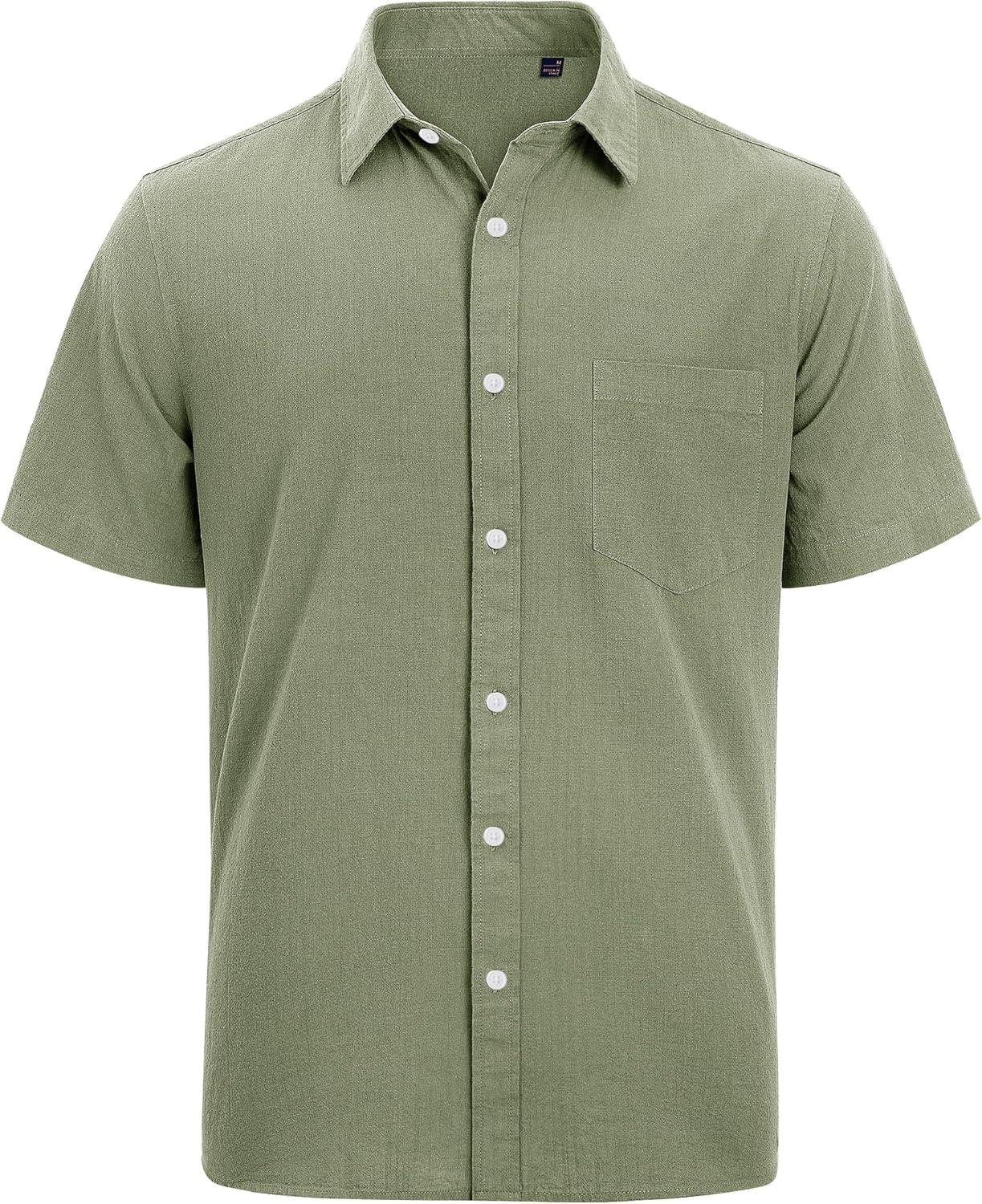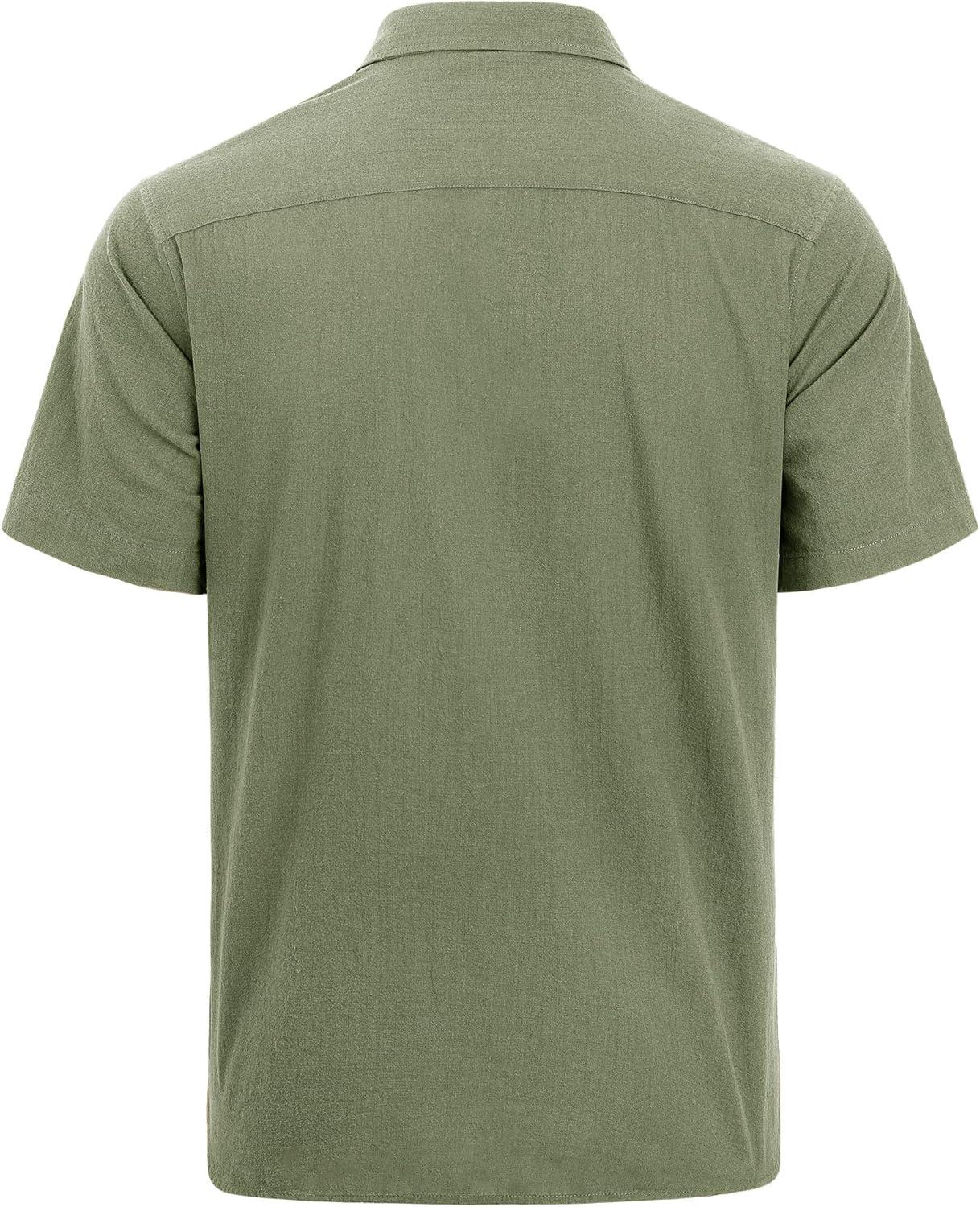 Mens Linen Shirts Short Sleeve Button Down Shirt Casual Cuban Guayabera Lightweight Summer Beach Solid Tops(Army Green)