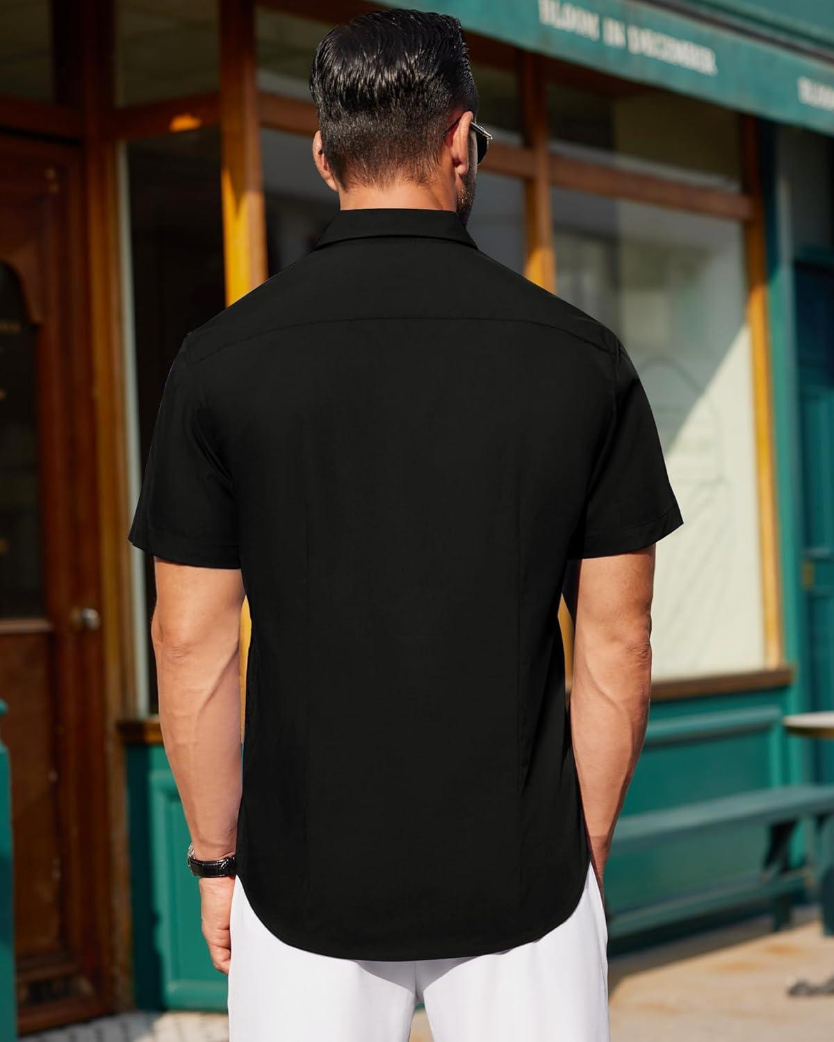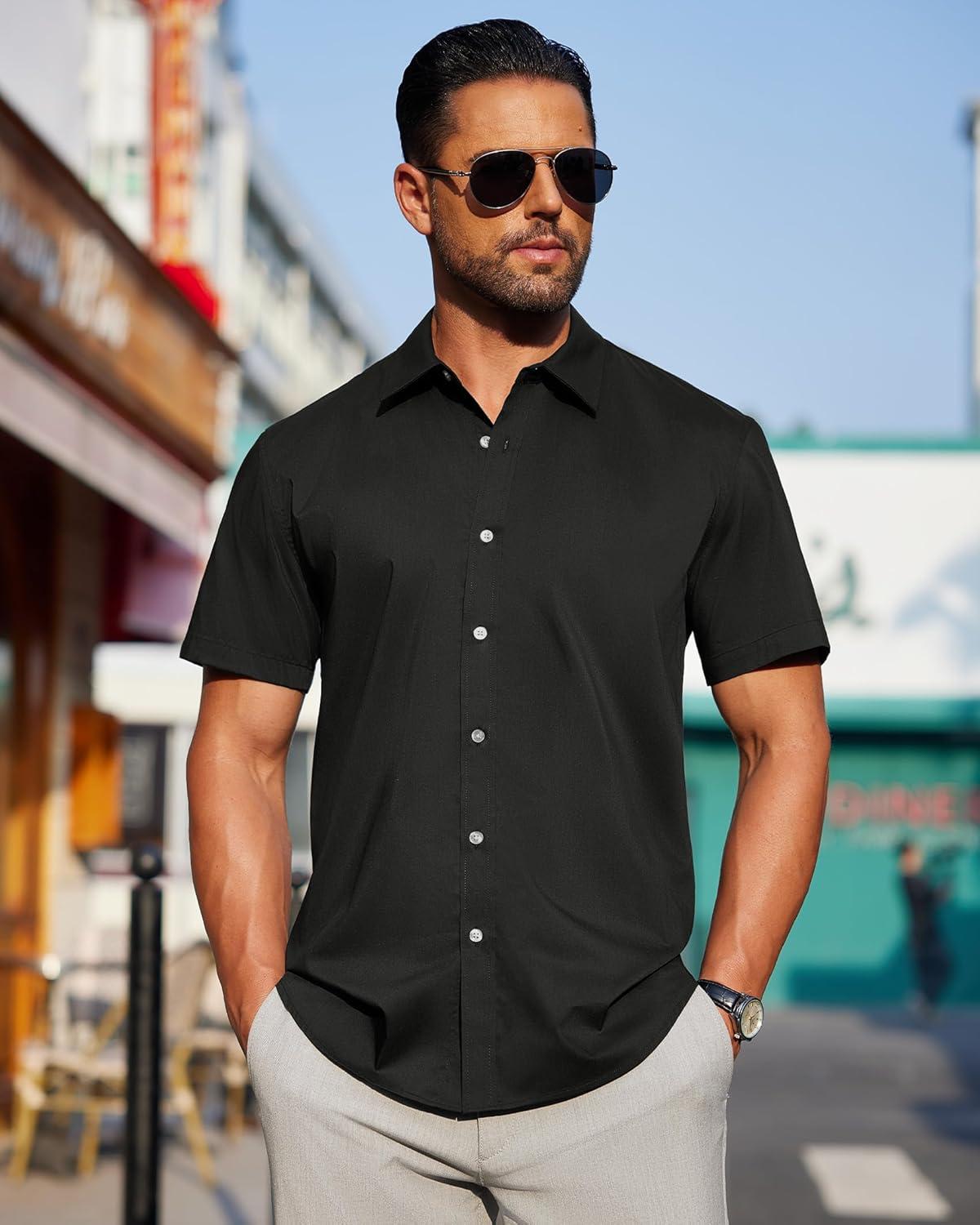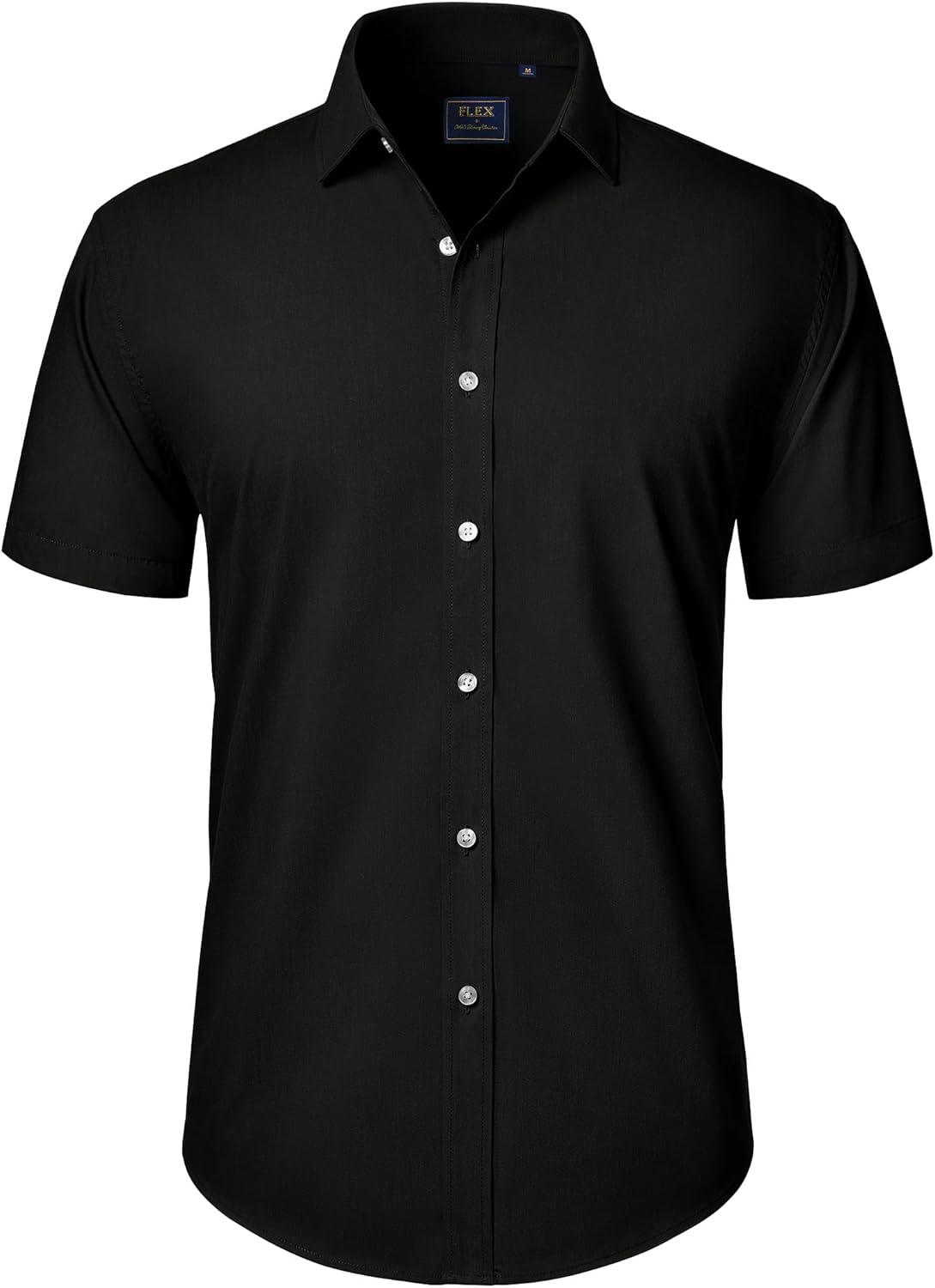 J.VER Mens Short Sleeve Button Down Shirt Stretch Business Casual Dress Shirts Solid Summer Wedding Prom Tops(Solid Black)