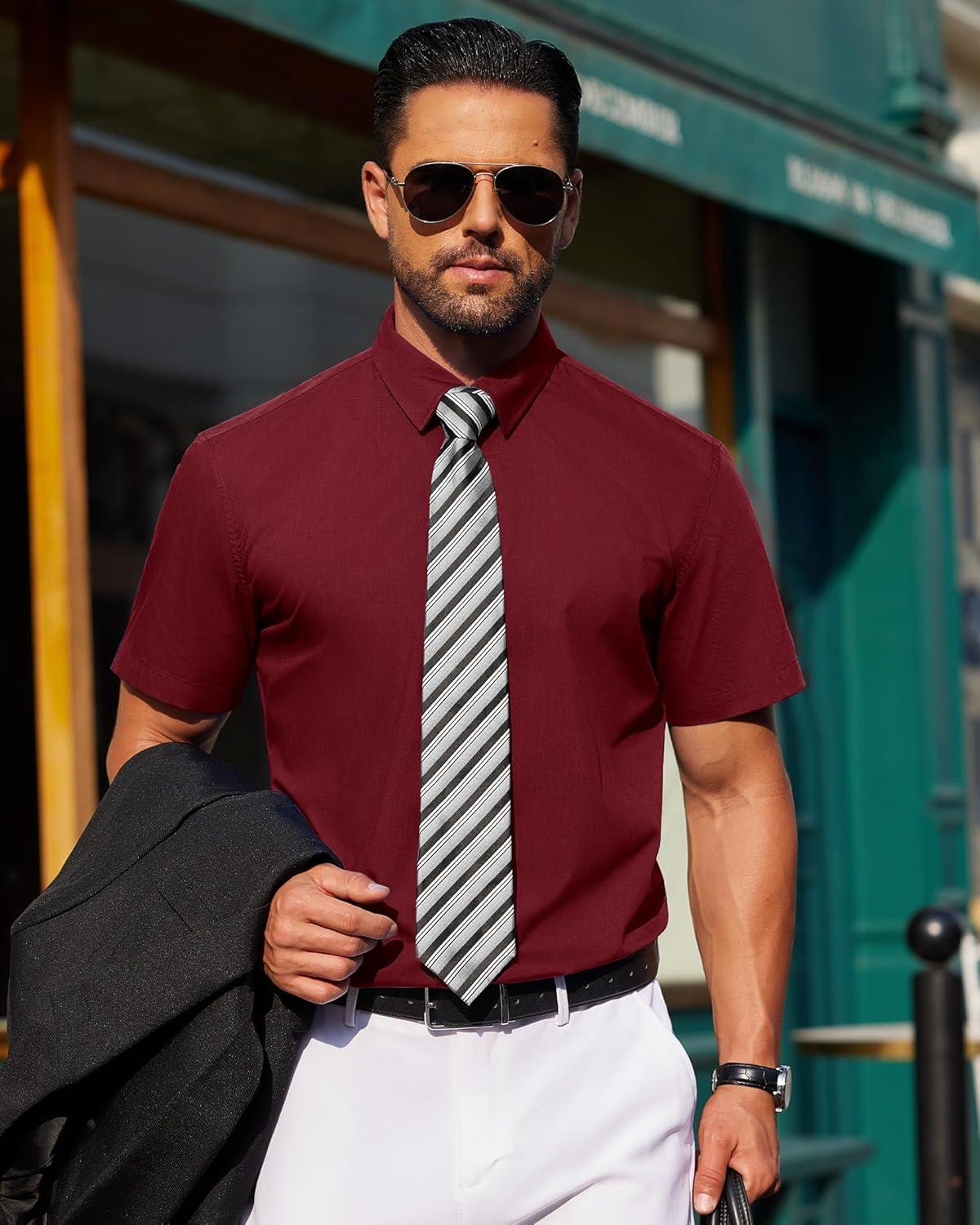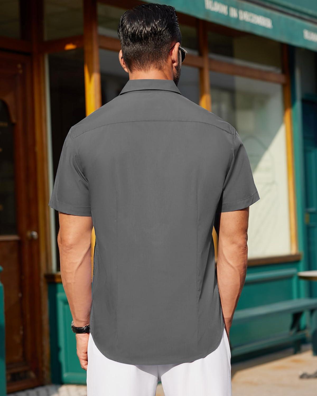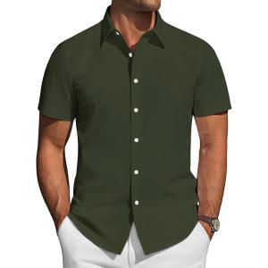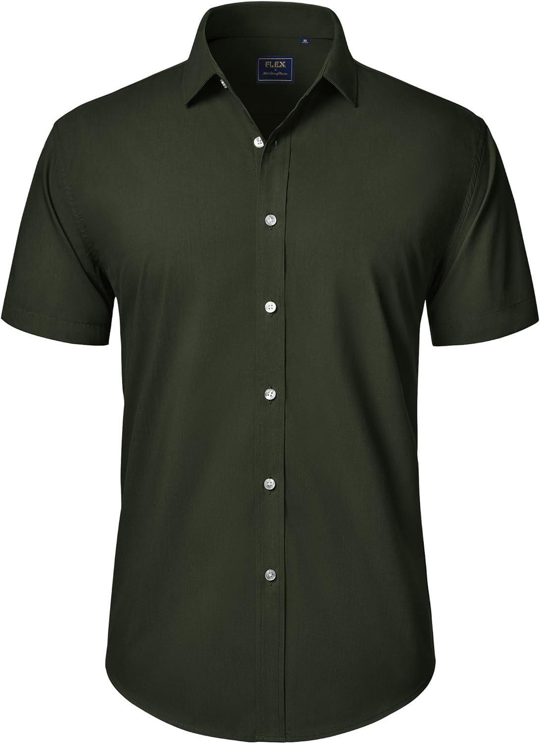 J.VER Mens Short Sleeve Button Down Shirt Stretch Business Casual Dress Shirts Solid Summer Wedding Prom Tops(Solid Black)