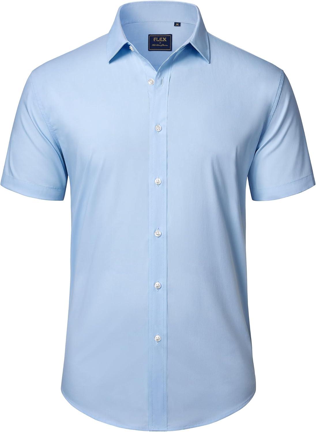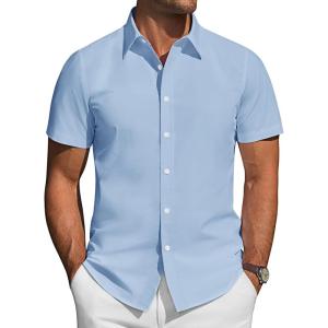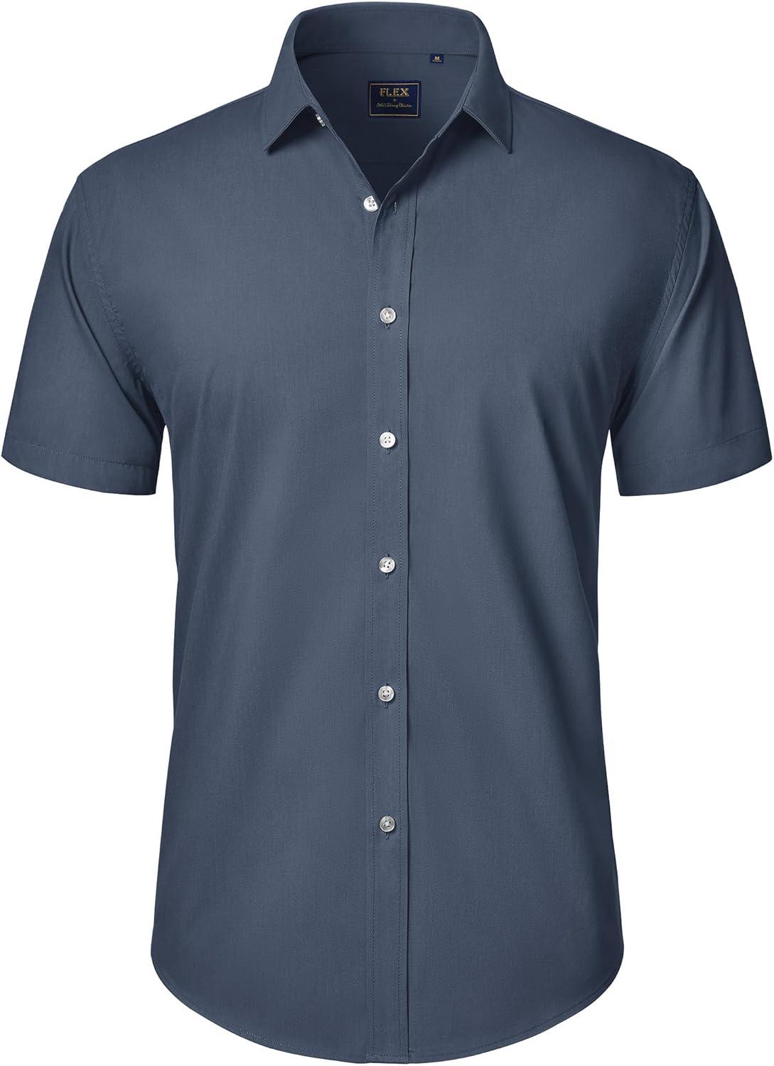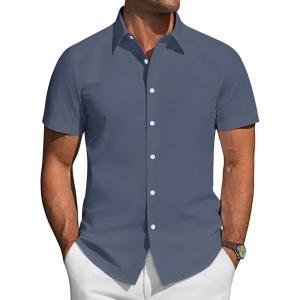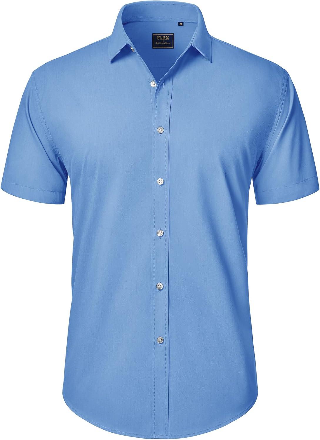 J.VER Mens Short Sleeve Button Down Shirt Stretch Business Casual Dress Shirts Solid Summer Wedding Prom Tops(Misty Blue)