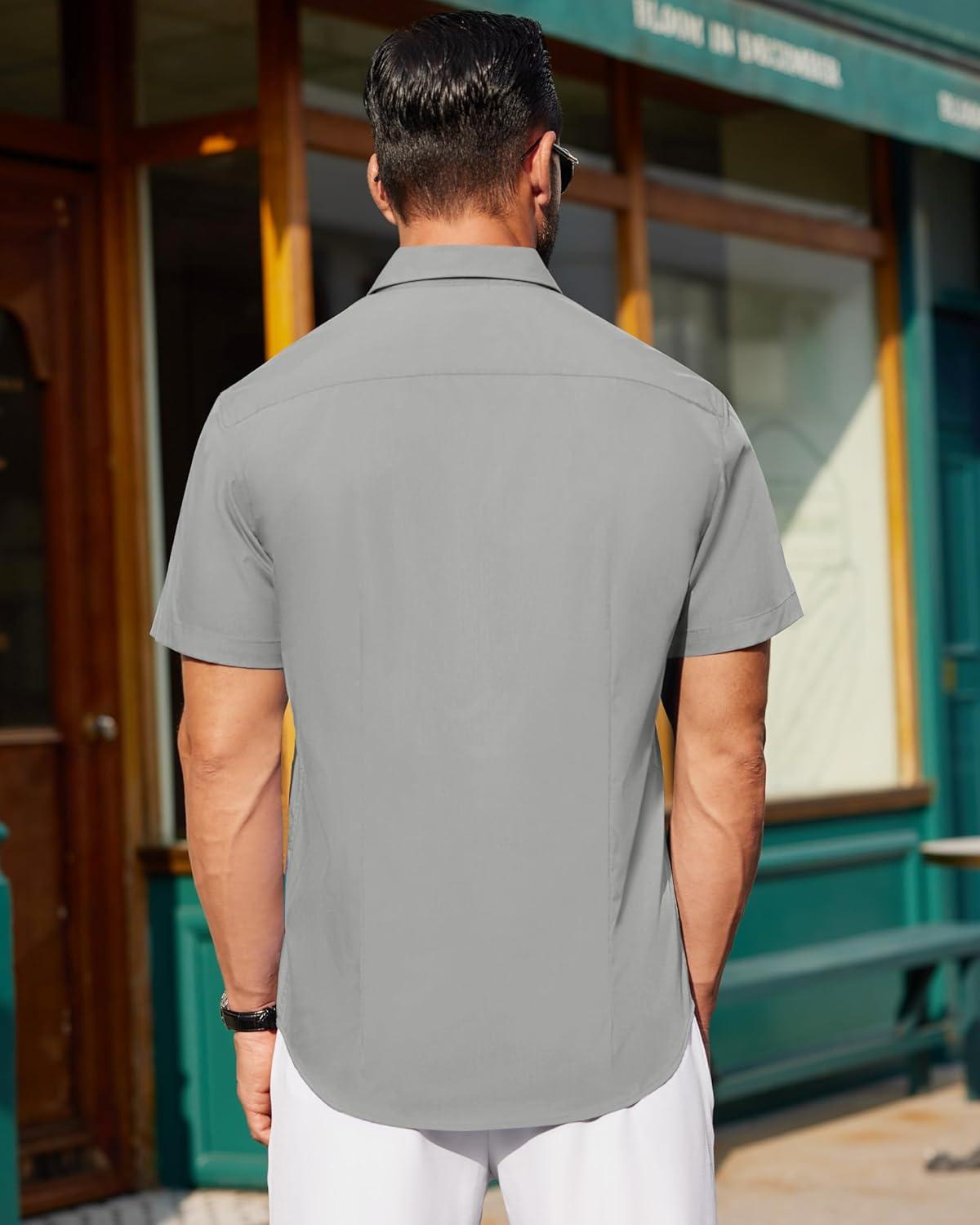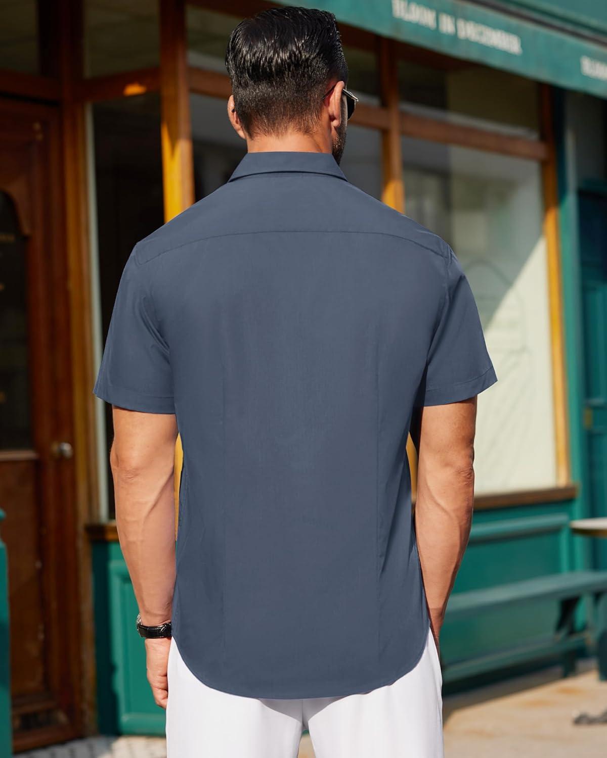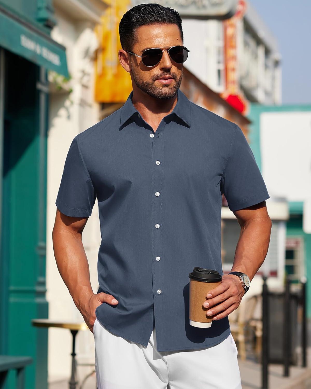 J.VER Mens Short Sleeve Button Down Shirt Stretch Business Casual Dress Shirts Solid Summer Wedding Prom Tops(Misty Blue)