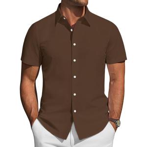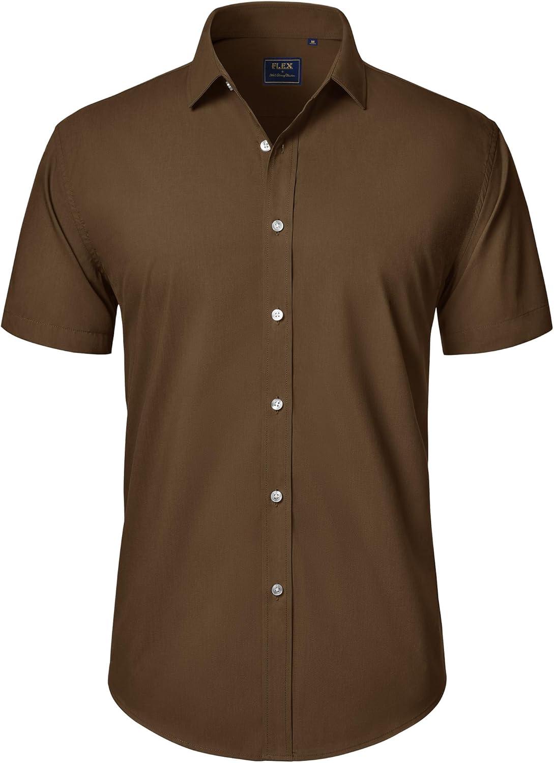 J.VER Womens Button Down Shirts Stretch Wrinkle Free Formal Short Sleeve Dress Shirt Summer Work Blouses Business Casual Tops(Coffee)