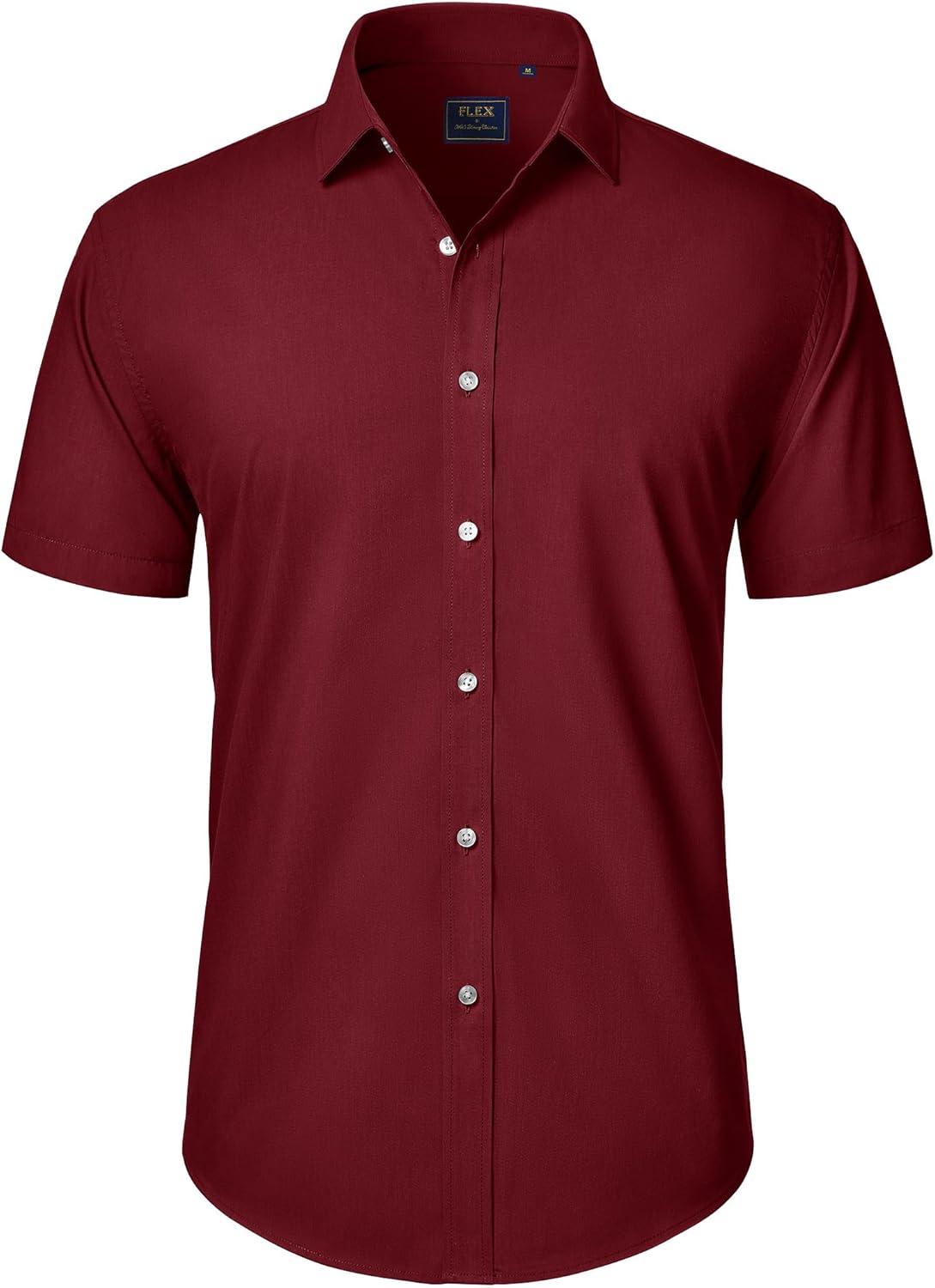 J.VER Womens Button Down Shirts Stretch Wrinkle Free Formal Short Sleeve Dress Shirt Summer Work Blouses Business Casual Tops(Burgundy)