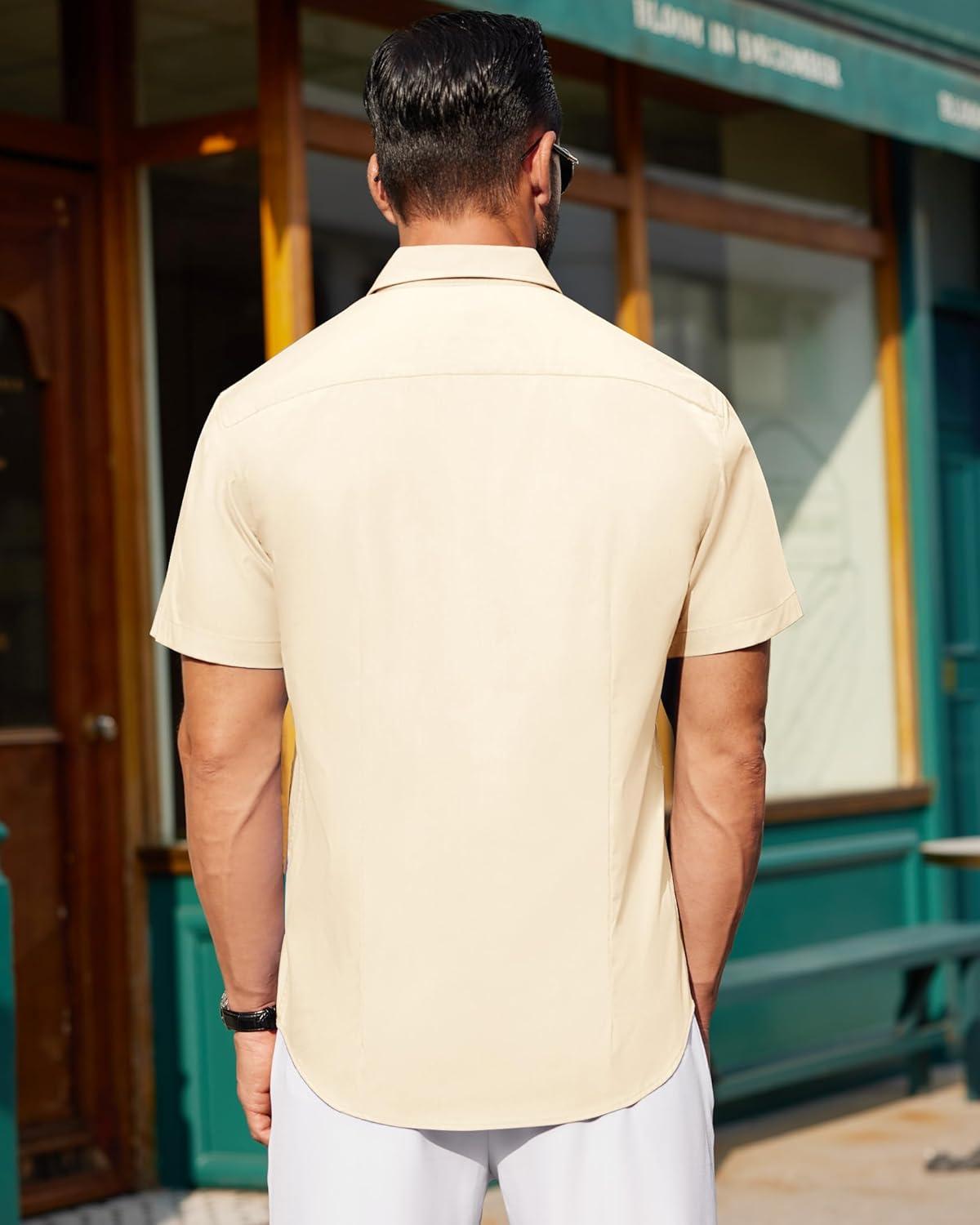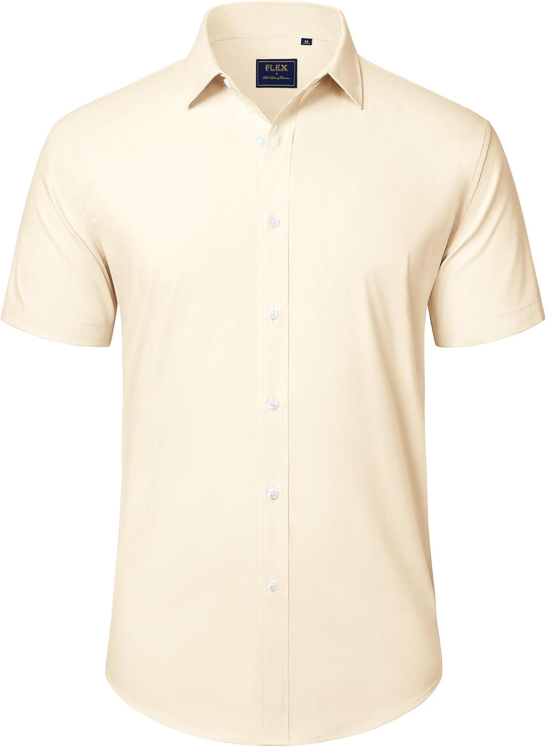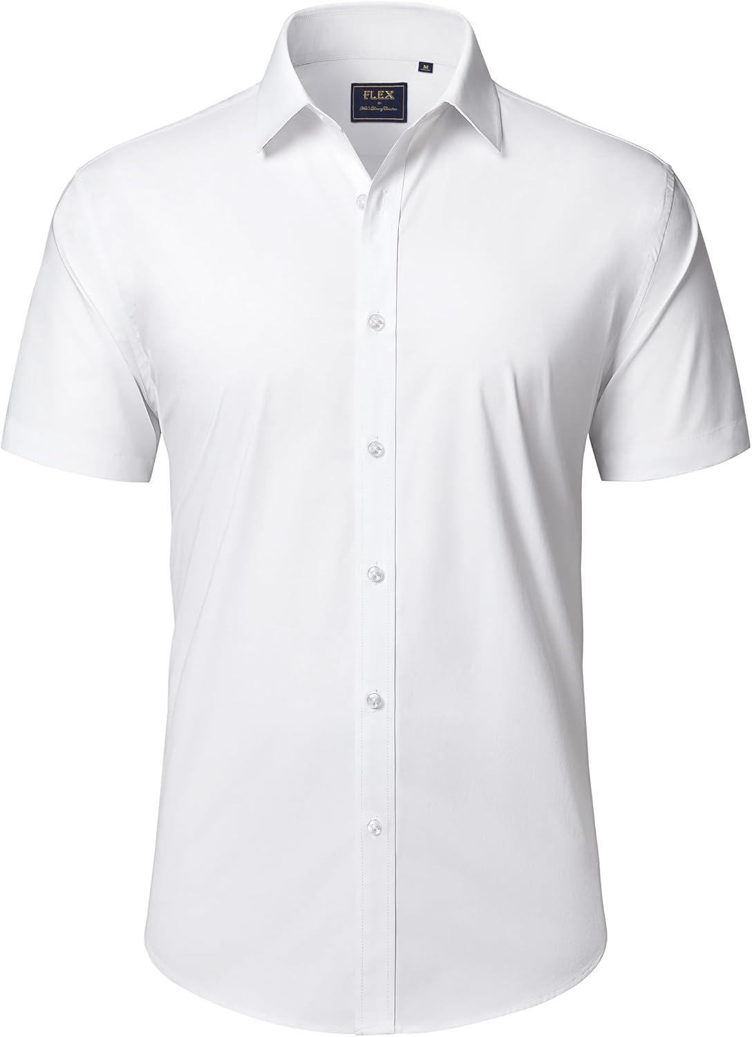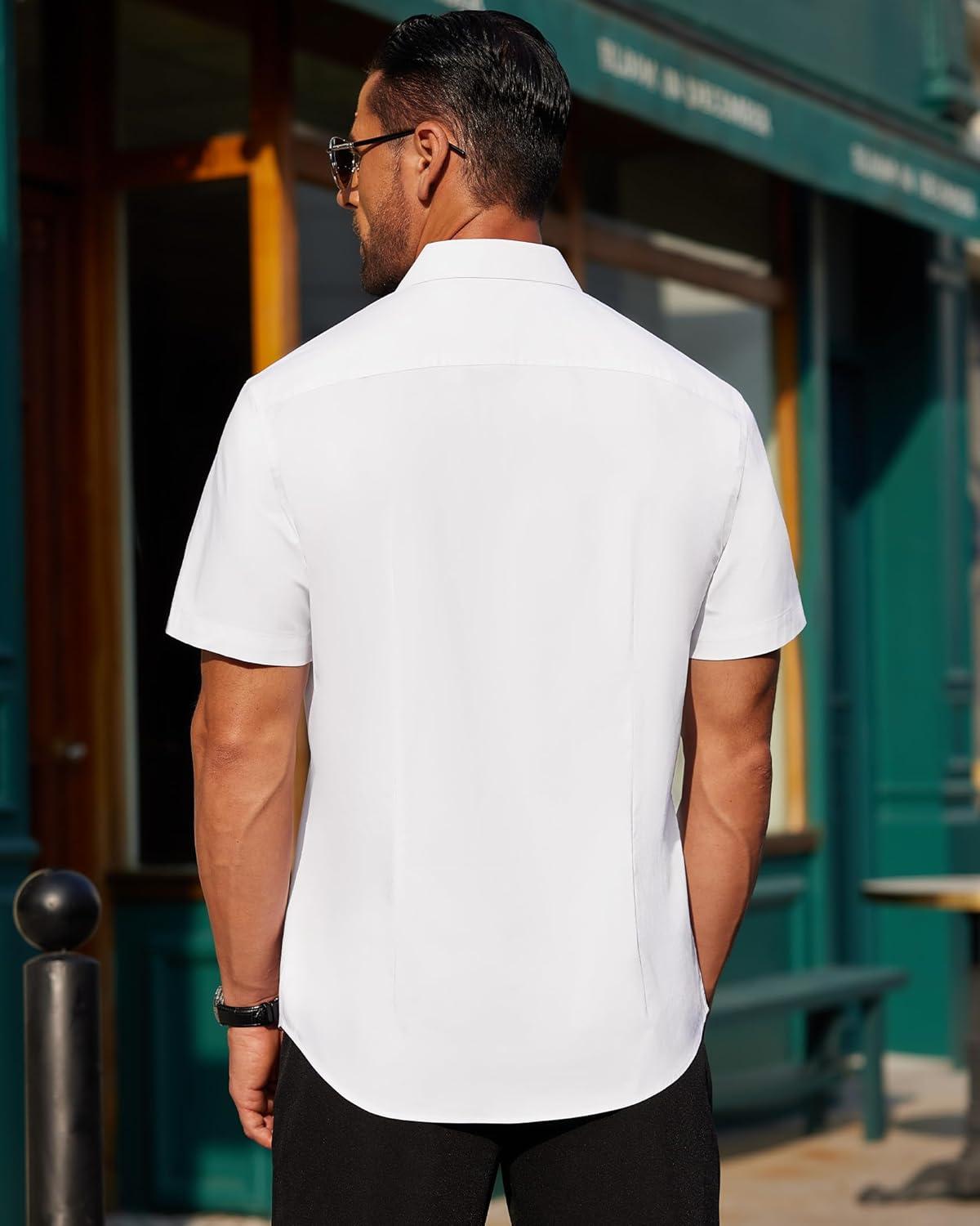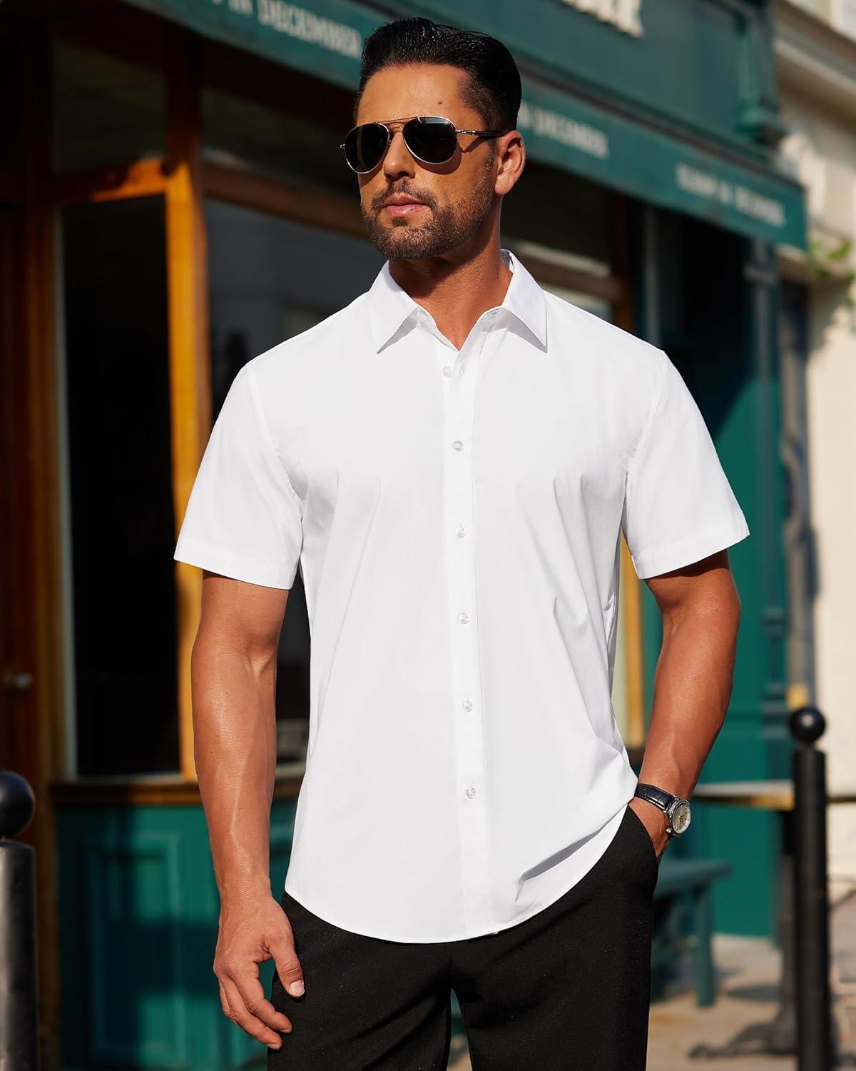 J.VER Mens Short Sleeve Button Down Shirt Stretch Business Casual Dress Shirts Solid Summer Wedding Prom Tops(White)