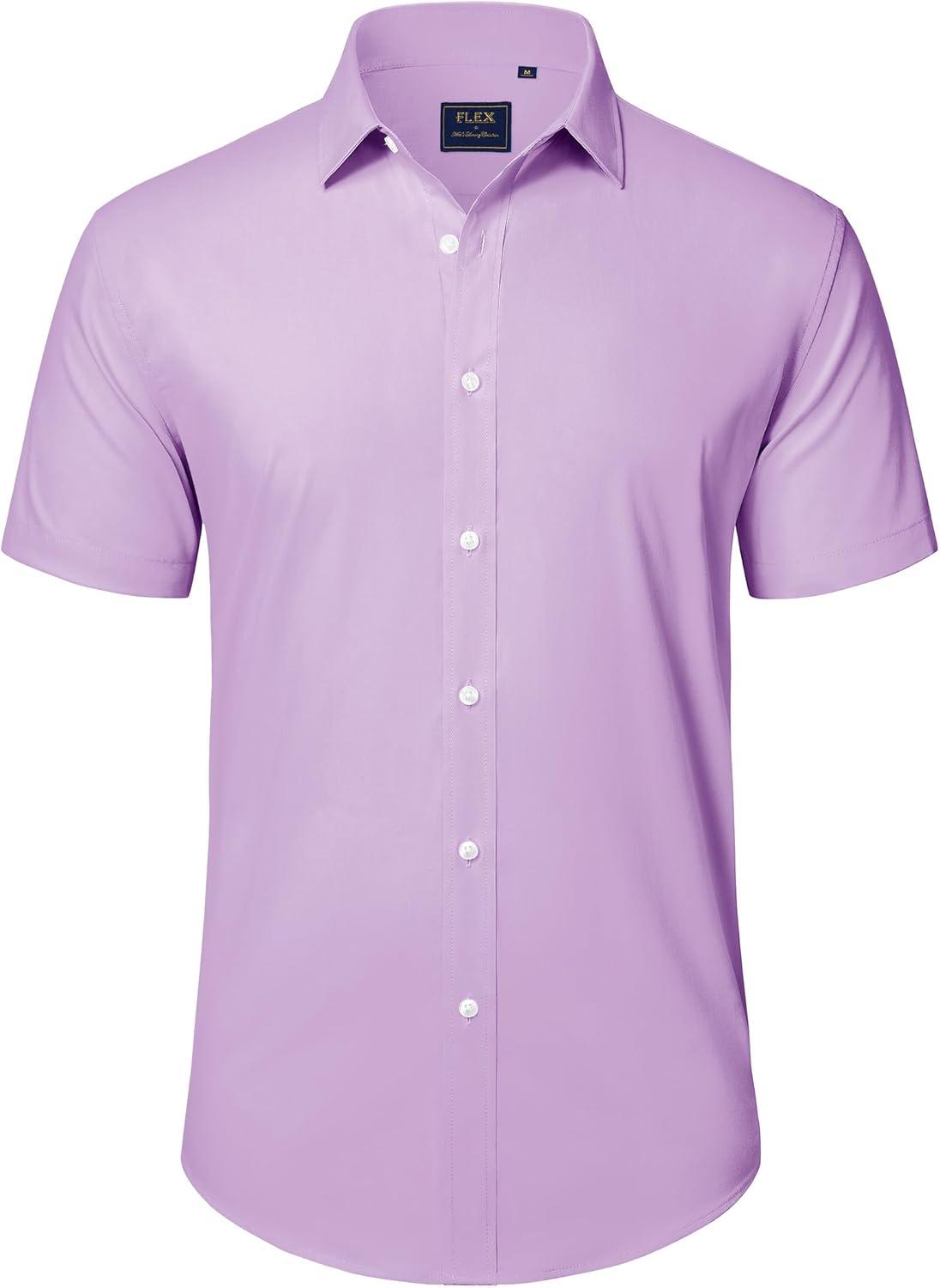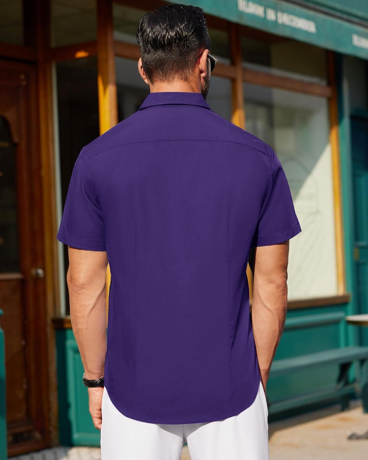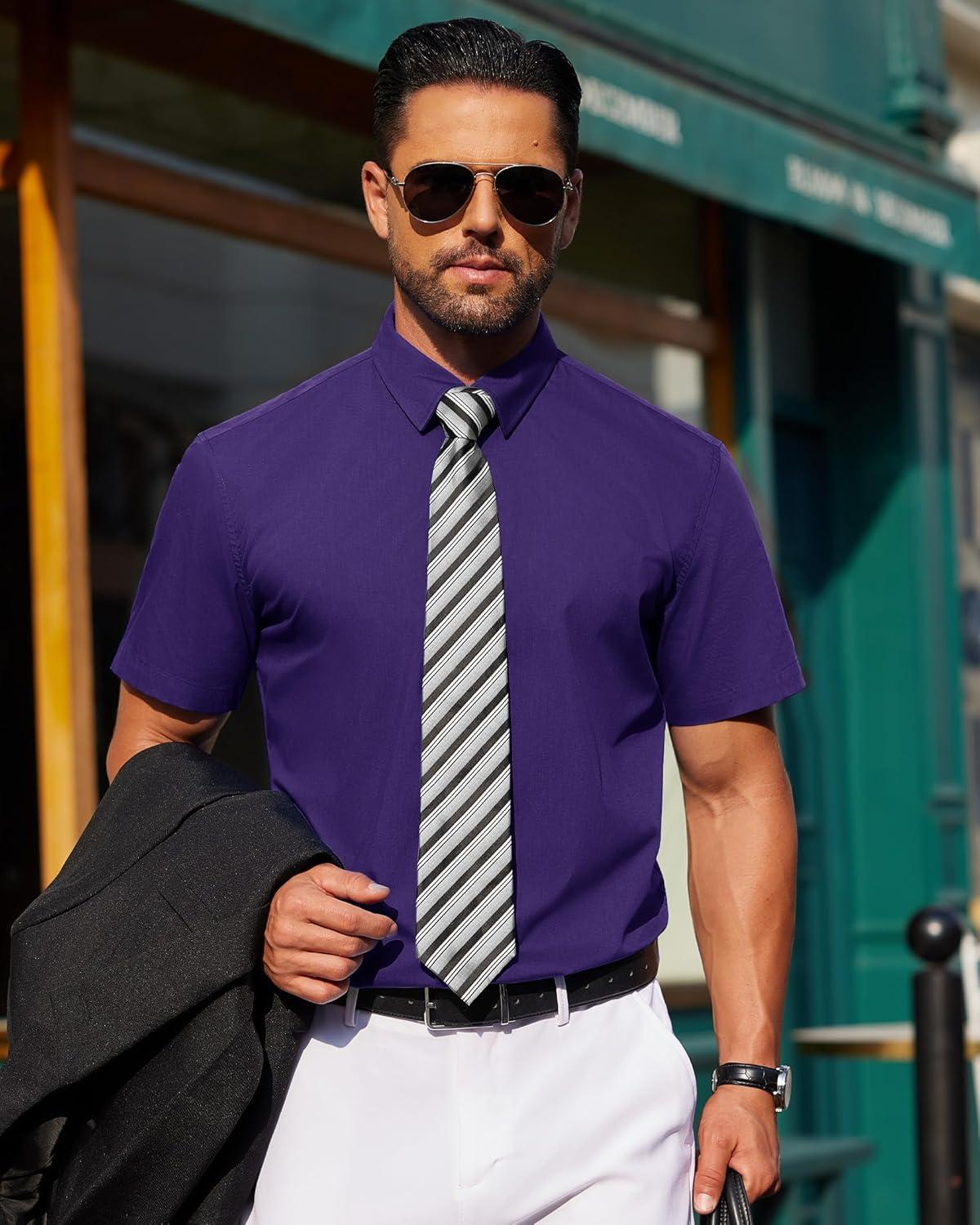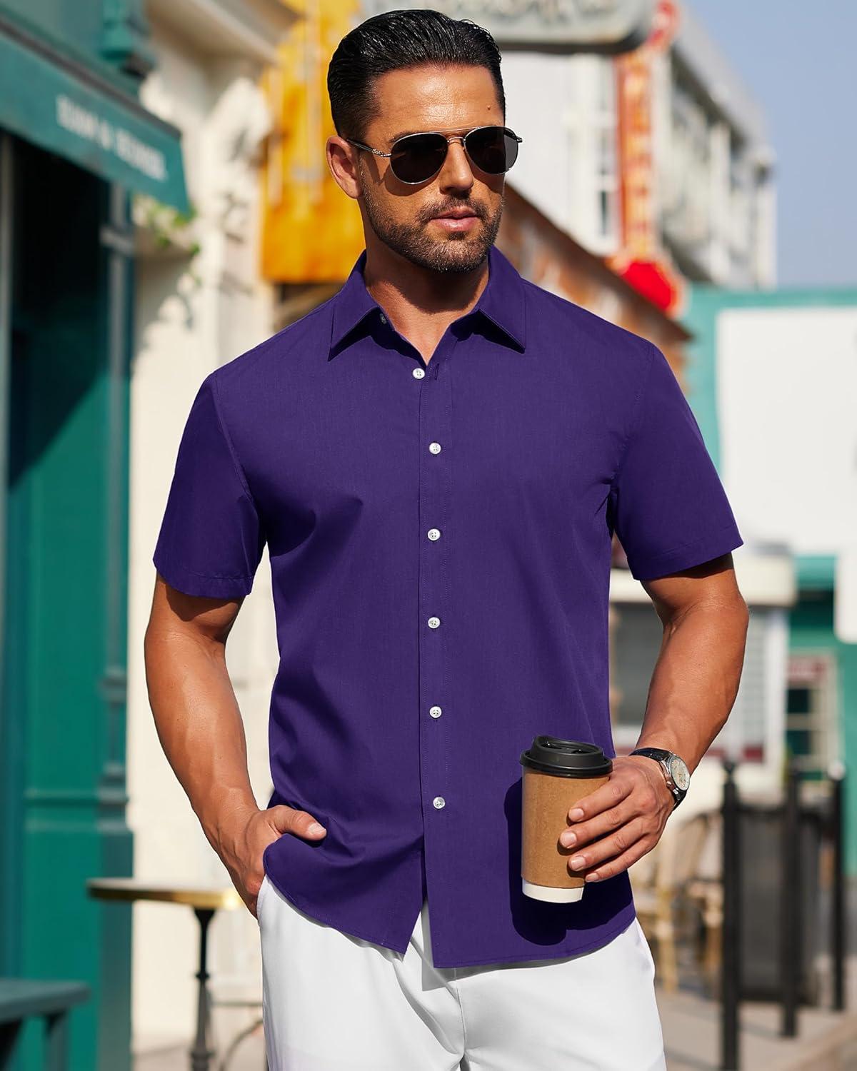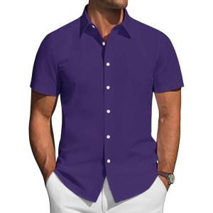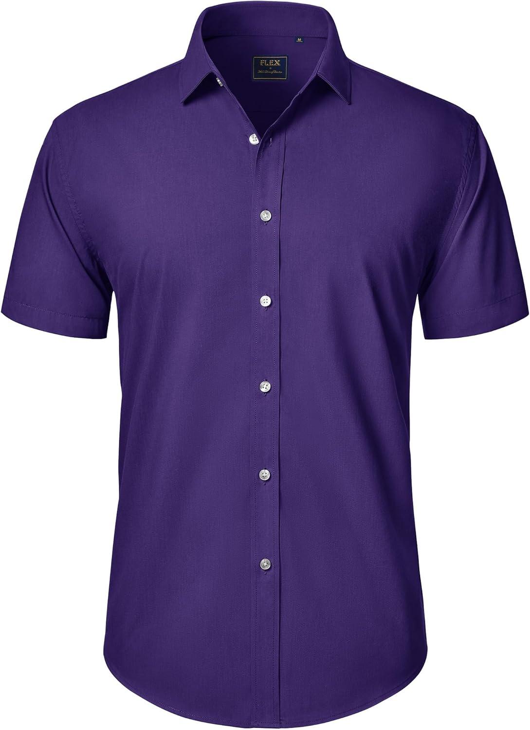 J.VER Mens Short Sleeve Button Down Shirt Stretch Business Casual Dress Shirts Solid Summer Wedding Prom Tops(Purple)