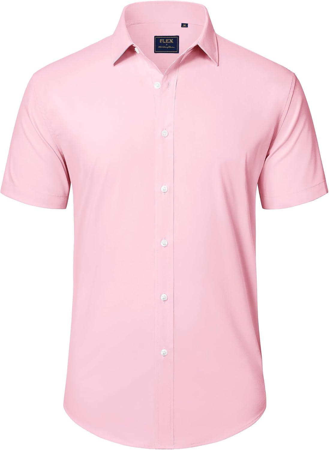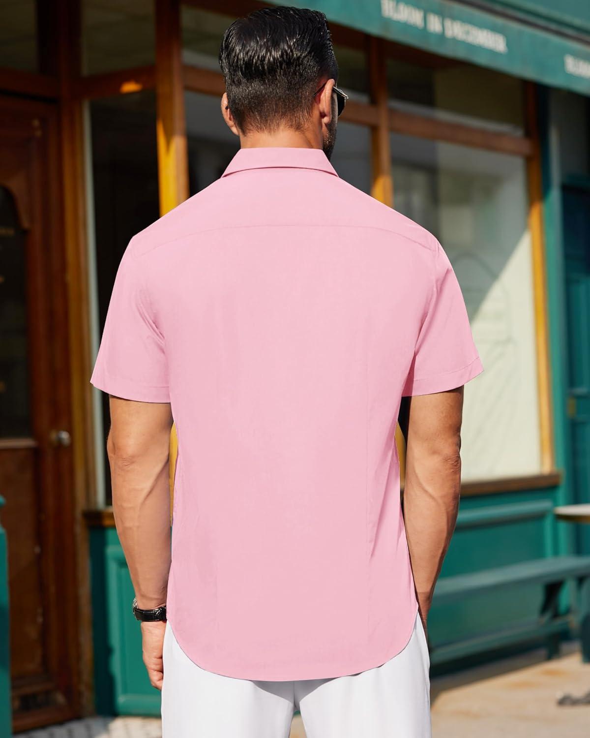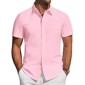 J.VER Mens Short Sleeve Button Down Shirt Stretch Business Casual Dress Shirts Solid Summer Wedding Prom Tops(Pink)