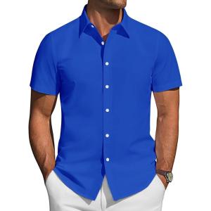 J.VER Mens Short Sleeve Button Down Shirt Stretch Business Casual Dress Shirts Solid Summer Wedding Prom Tops(Royal Blue)